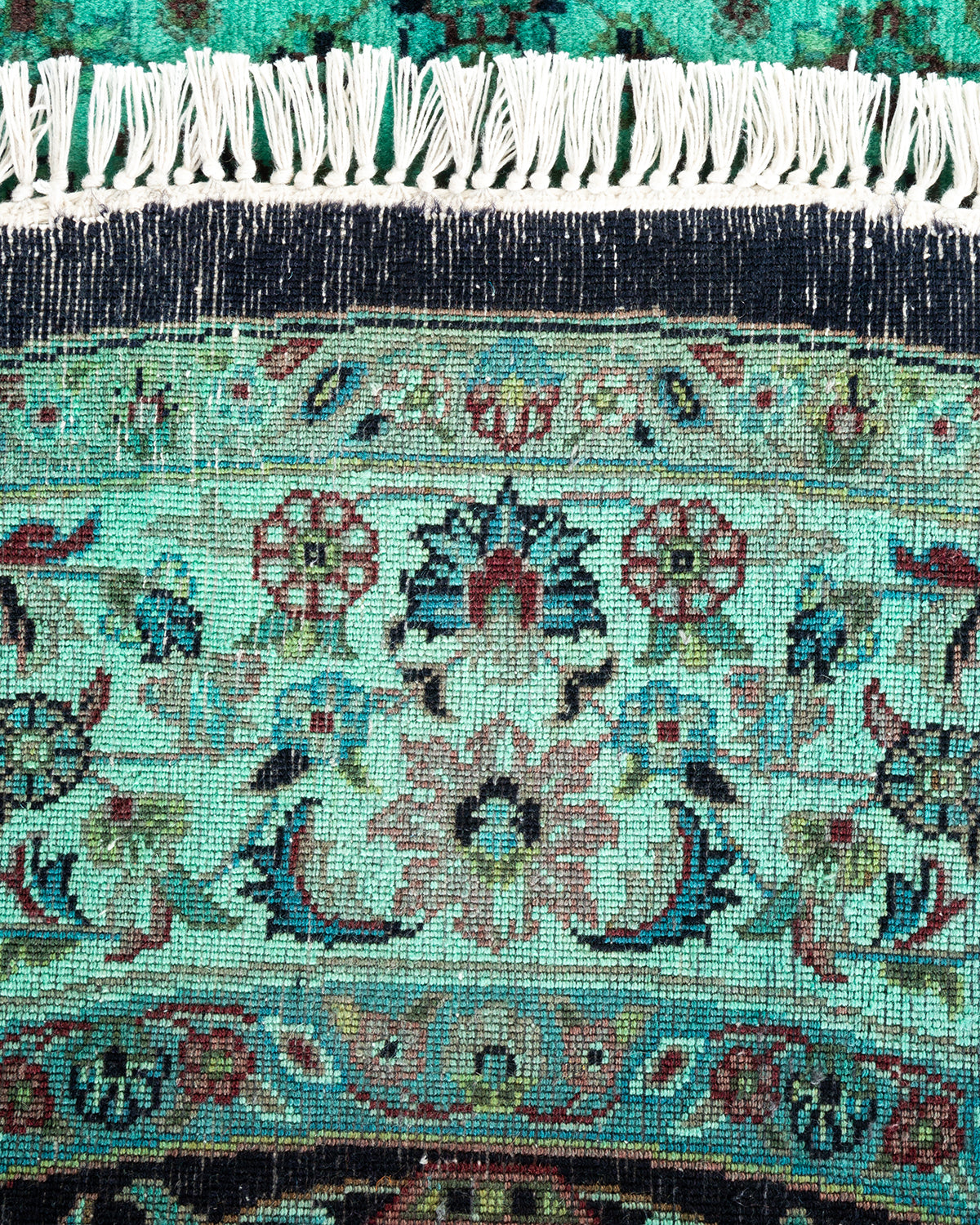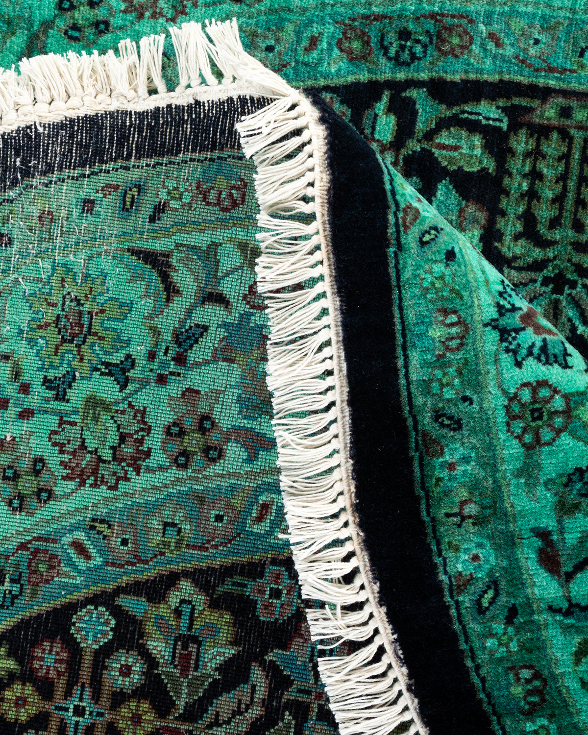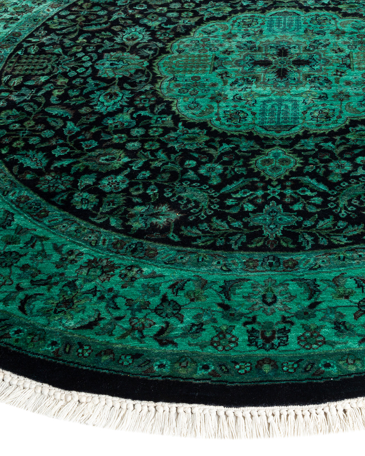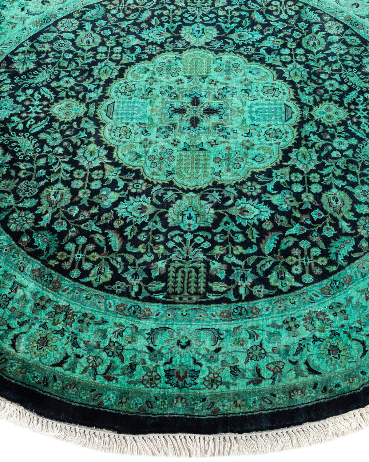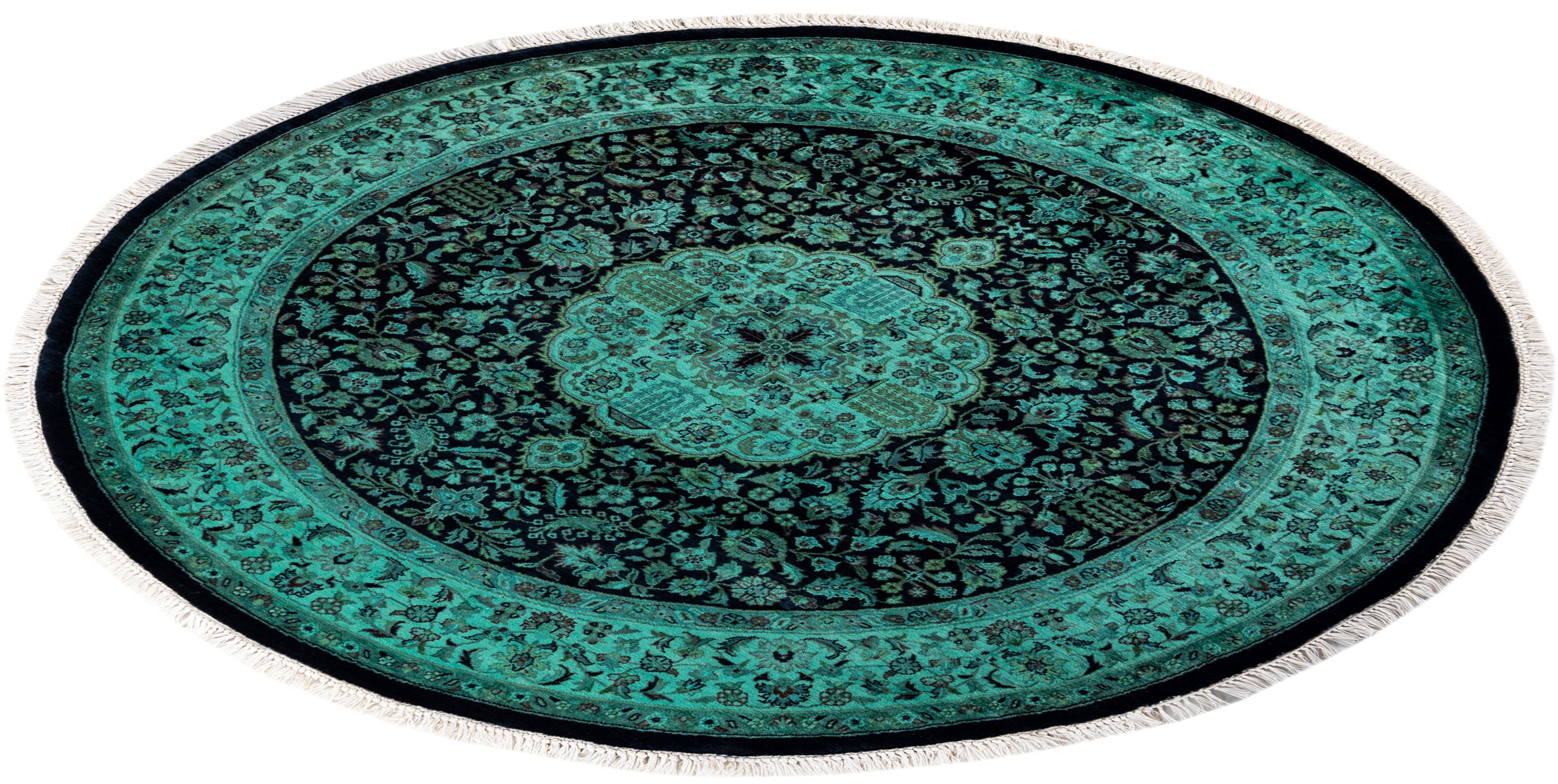 Contemporary Hand-Knotted Overdyed Green Round Area Rug 4' 7" x 4' 7"