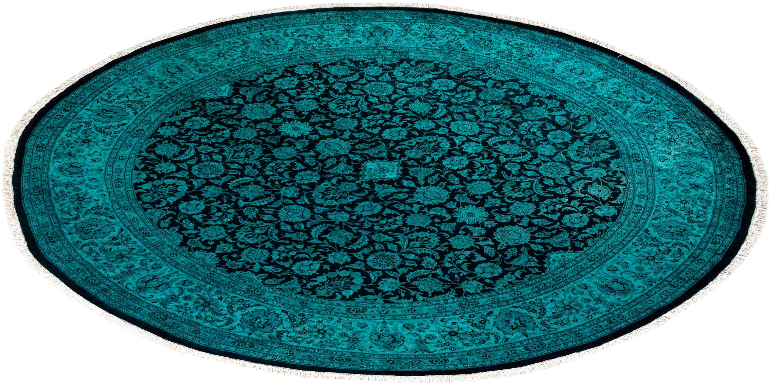 Contemporary Hand-Knotted Green Round Area Rug 6' 7" x 6' 9"