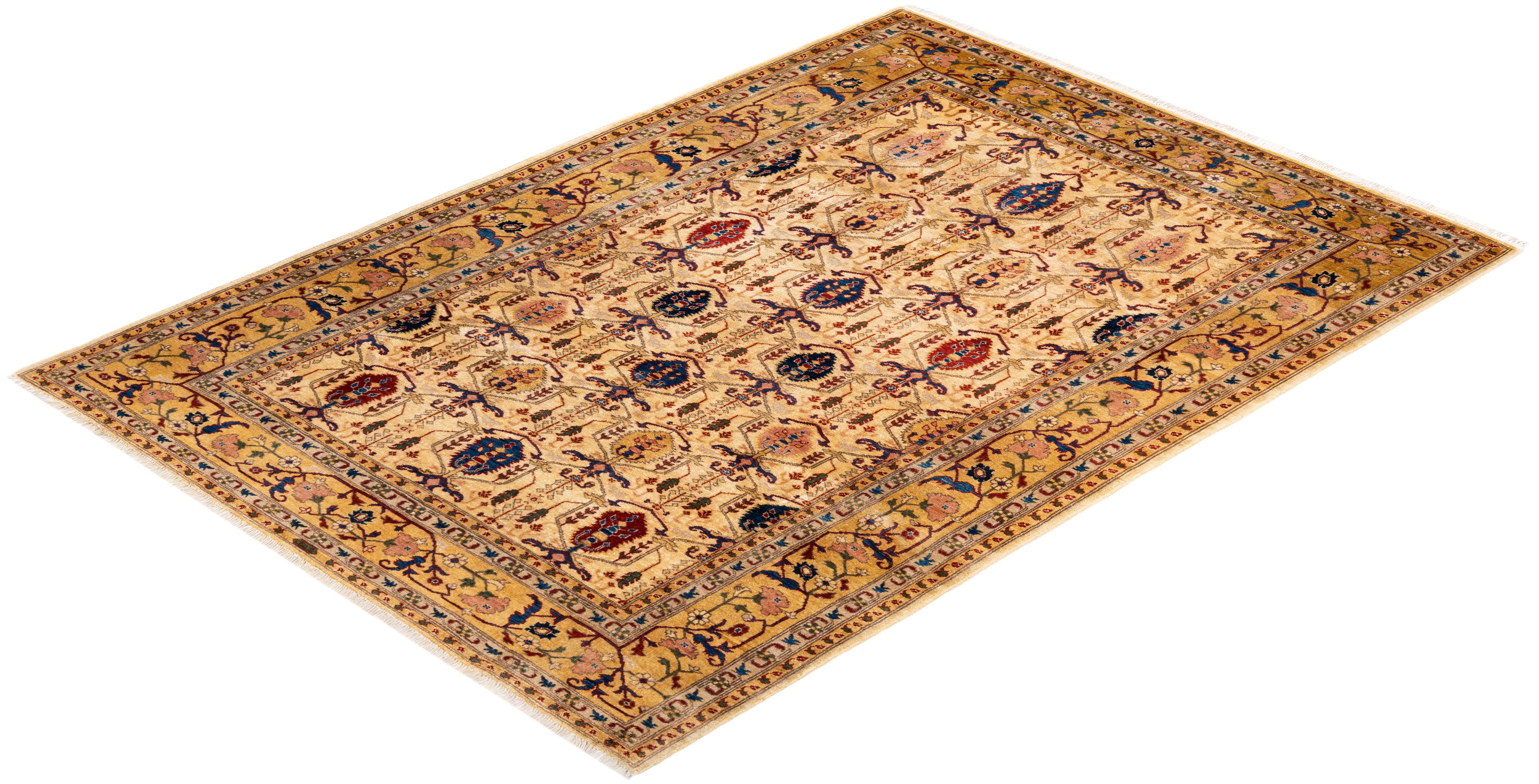 Contemporary Hand Knotted Eclectic Ivory Area Rug 6' 3" x 8' 7"