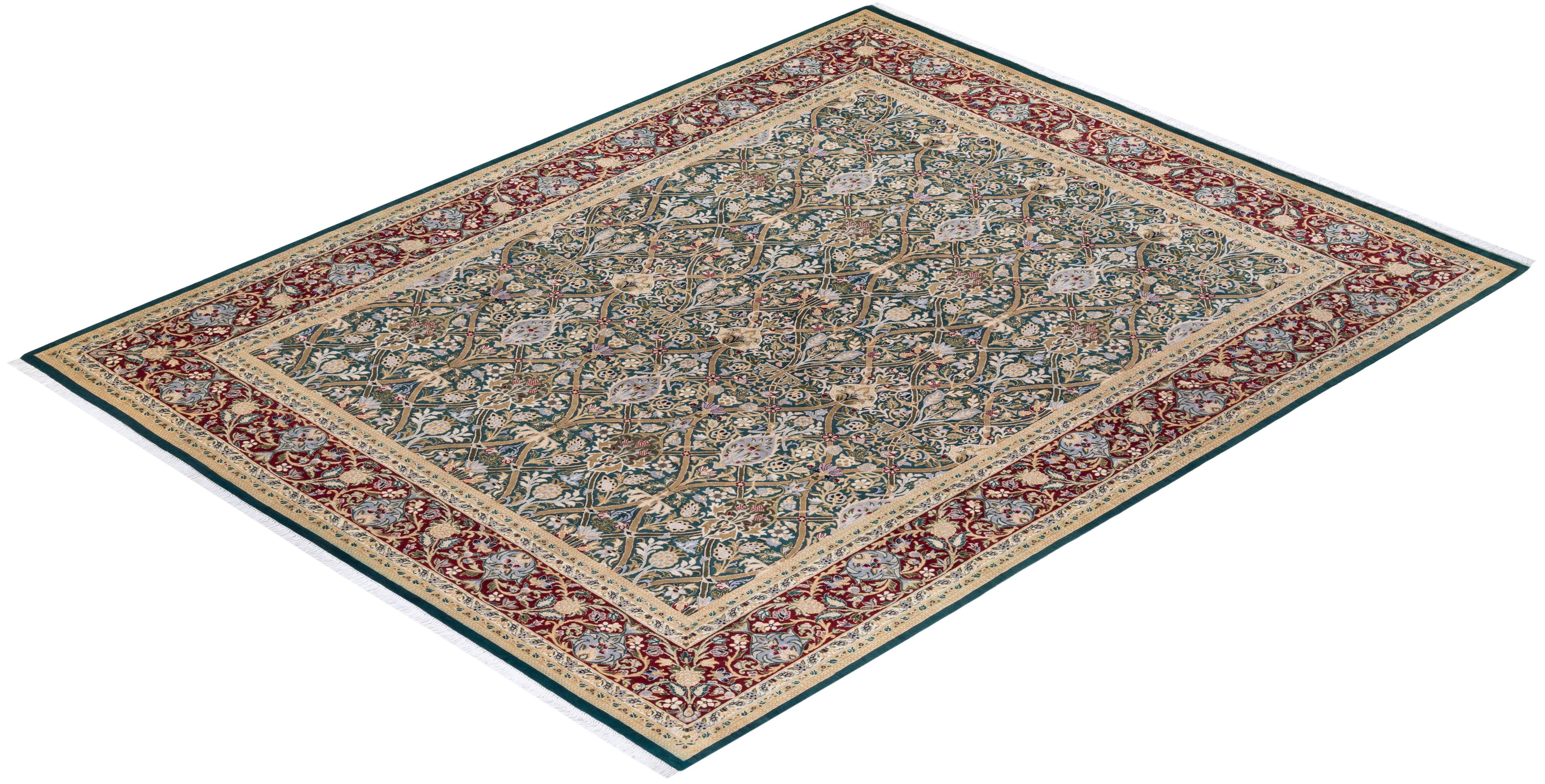 Traditional Hand Knotted Mogul Oriental Green Area Rug 8' 1" x 10' 4"