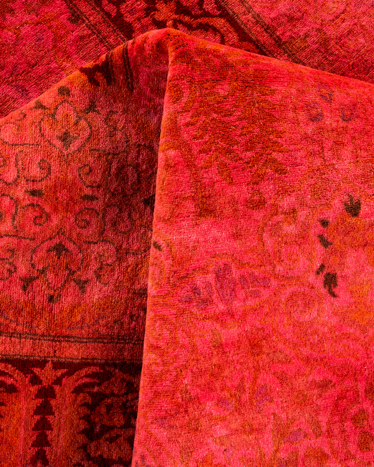 Overdyed rugs epitomize classic with a twist: traditional patterns overdyed in brilliant color. Each hand-knotted rug is washed in a 100%-natural botanical dye that reveals hidden nuances in the designs. These are rugs that transcend trends, and their sturdy construction ensures that they’ll withstand years of heavy traffic.