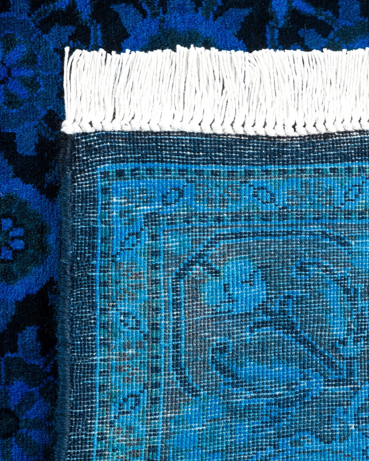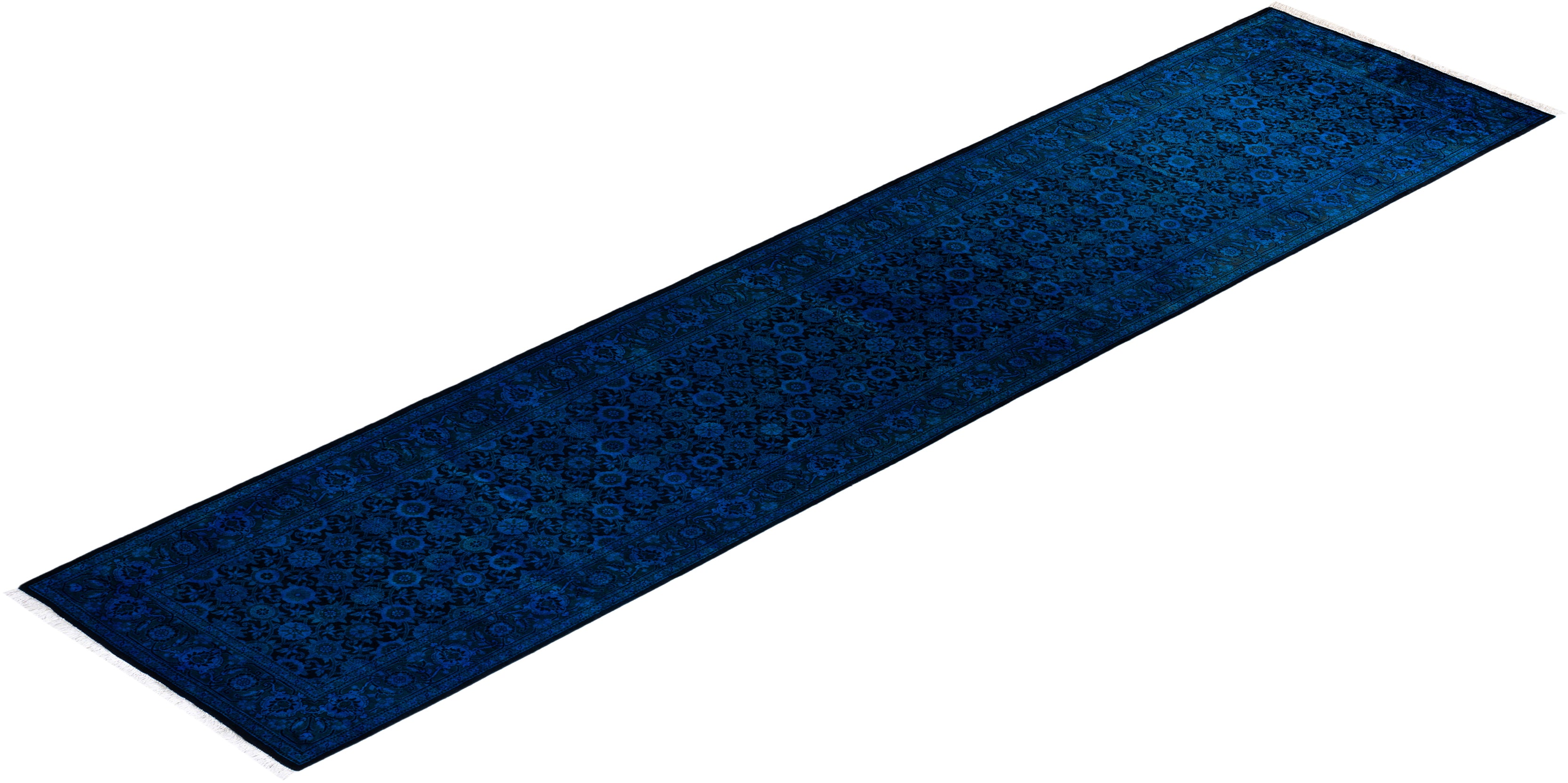 Contemporary Hand Knotted Overdyed Blue Runner 2' 7" x 11' 10"