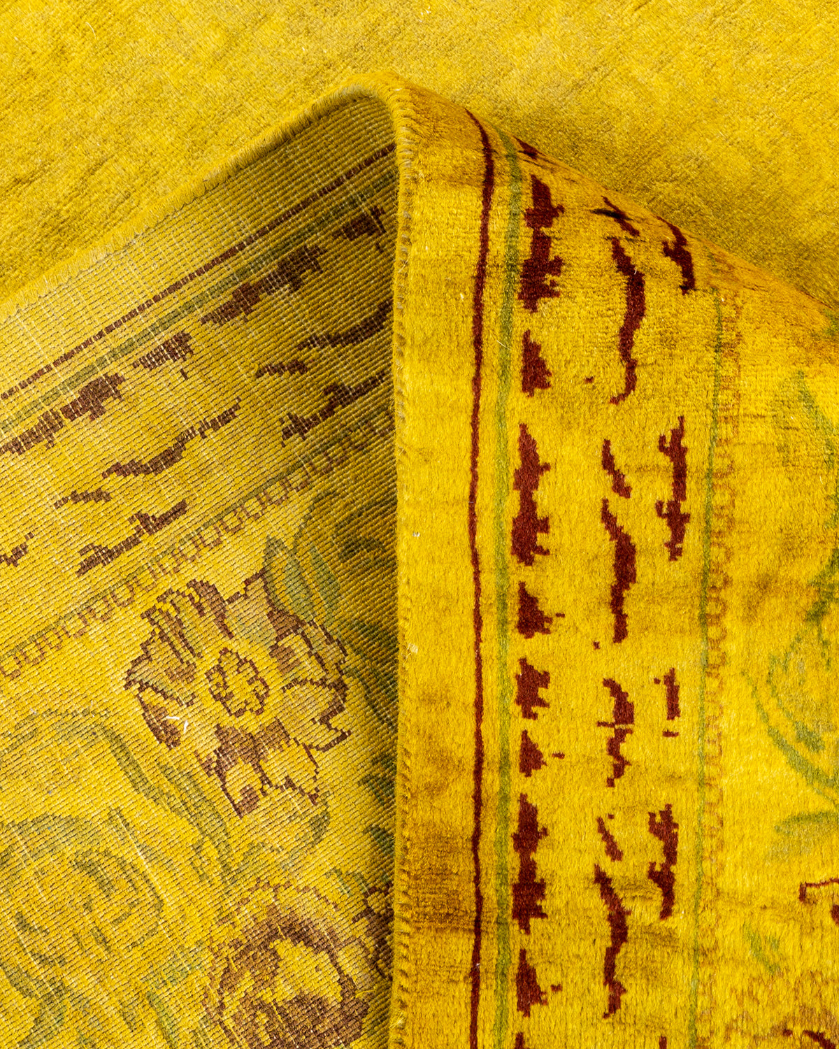 Overdyed rugs epitomize classic with a twist: traditional patterns overdyed in brilliant color. Each hand-knotted rug is washed in a 100%-natural botanical dye that reveals hidden nuances in the designs. These are rugs that transcend trends, and their sturdy construction ensures that they’ll withstand years of heavy traffic.