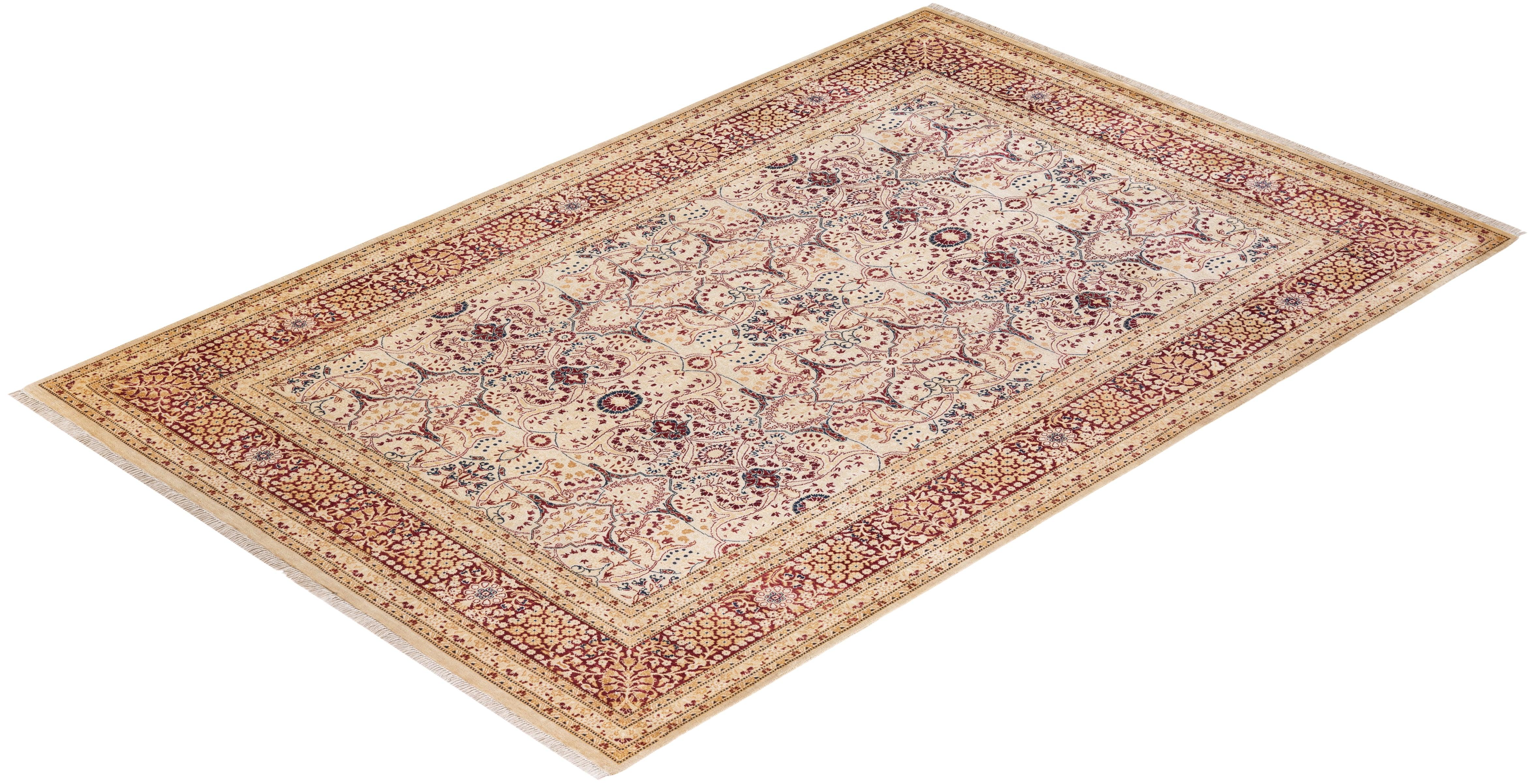 Traditional Hand Knotted Mogul Oriental Ivory Area Rug 6' 2" x 9' 4"