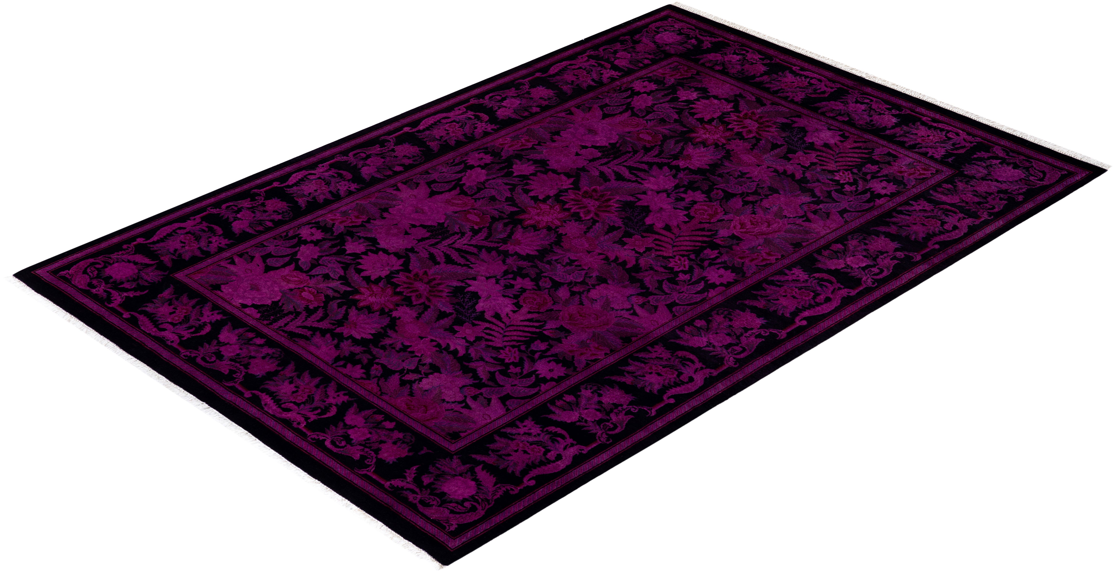 Contemporary Hand-Knotted Overdyed Pink Area Rug 6' 2" x 9' 1"