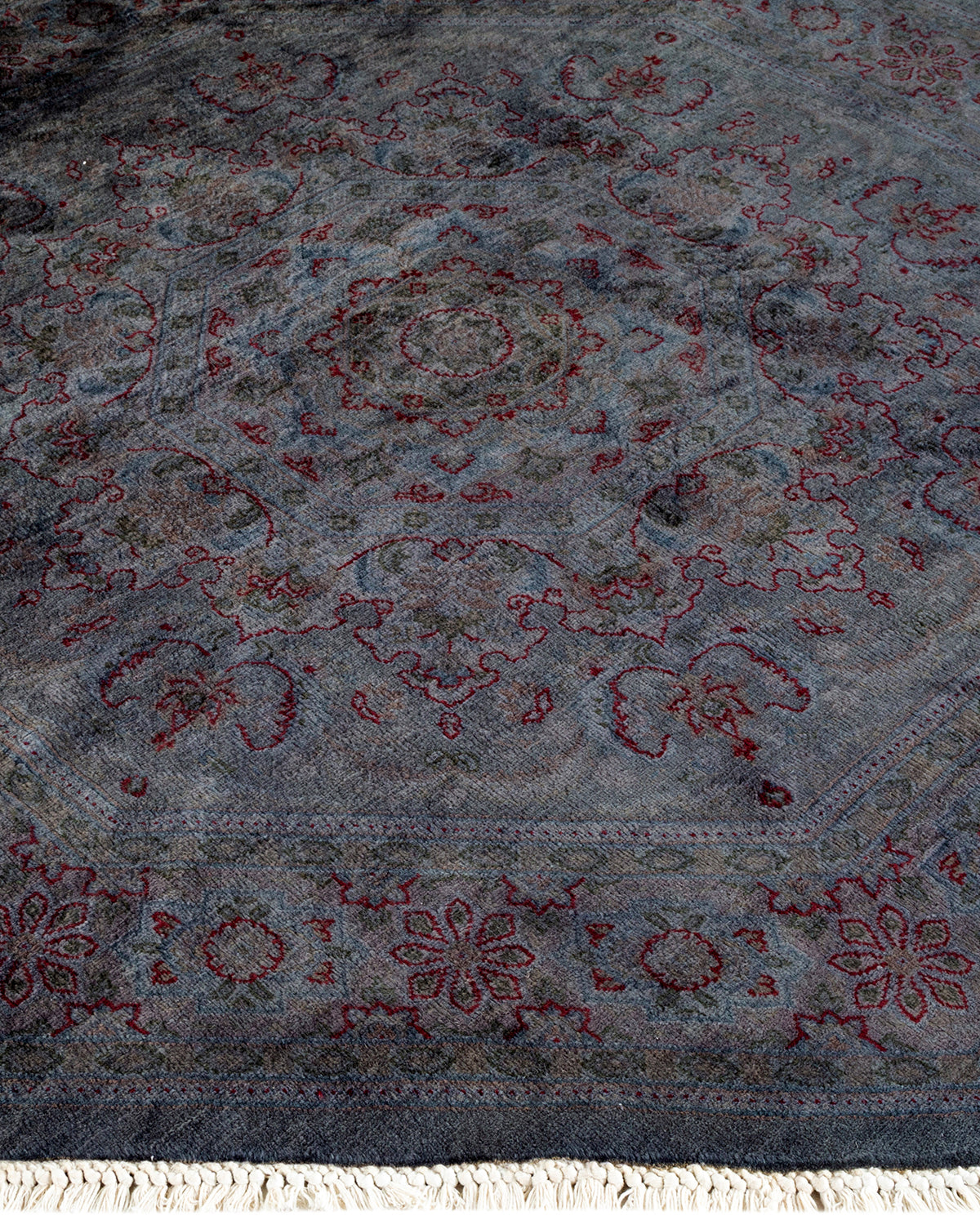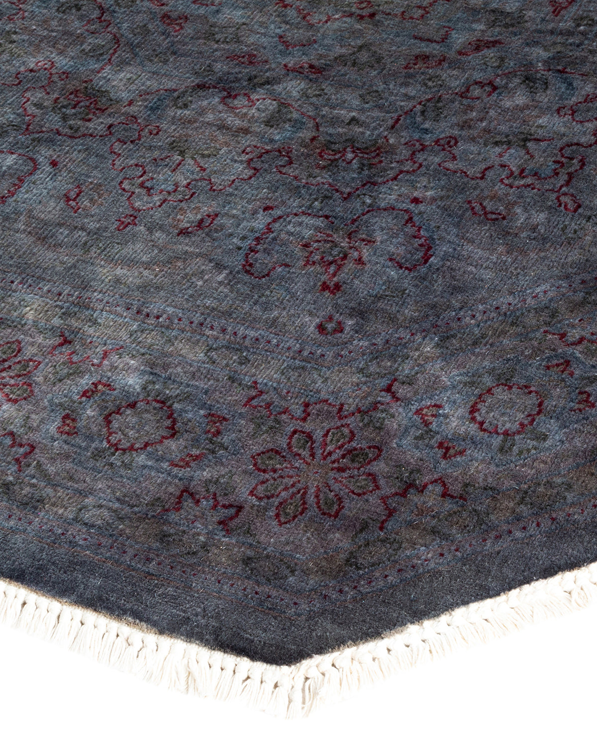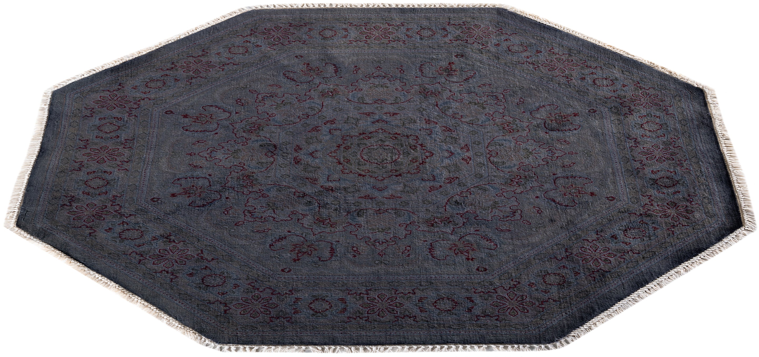 Contemporary Hand-Knotted Overdyed Gray Octagon Area rug 4' 4" x 4' 5"
