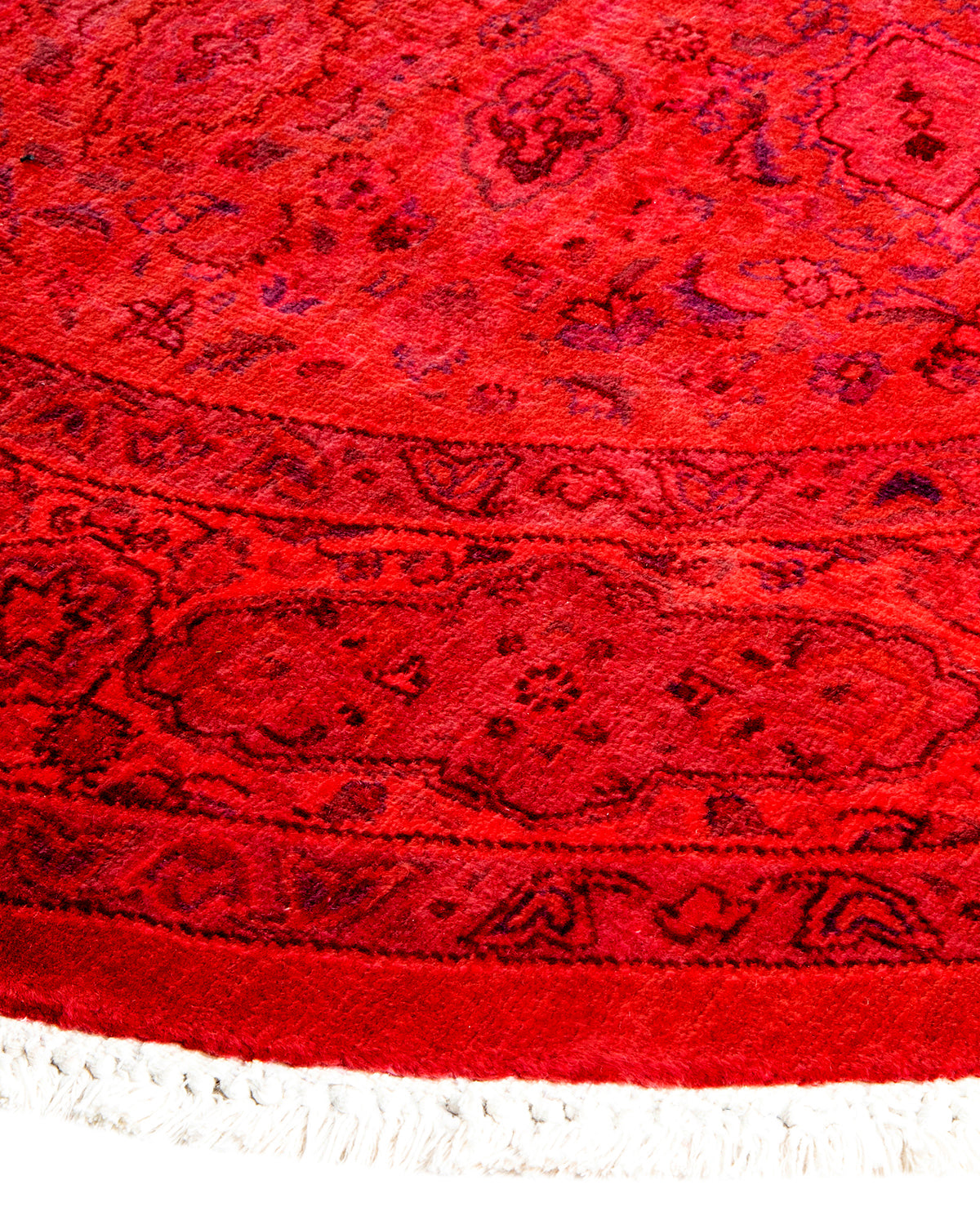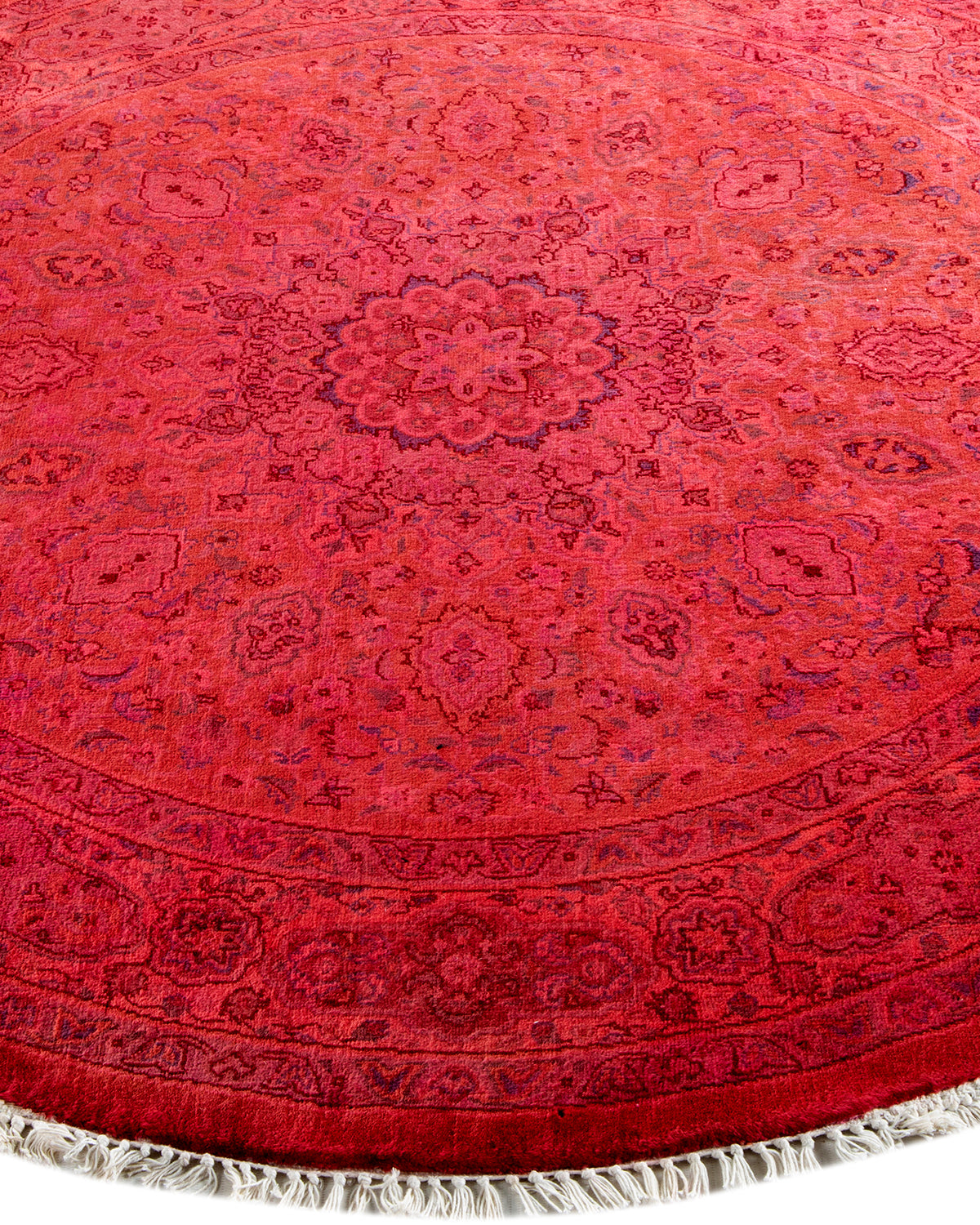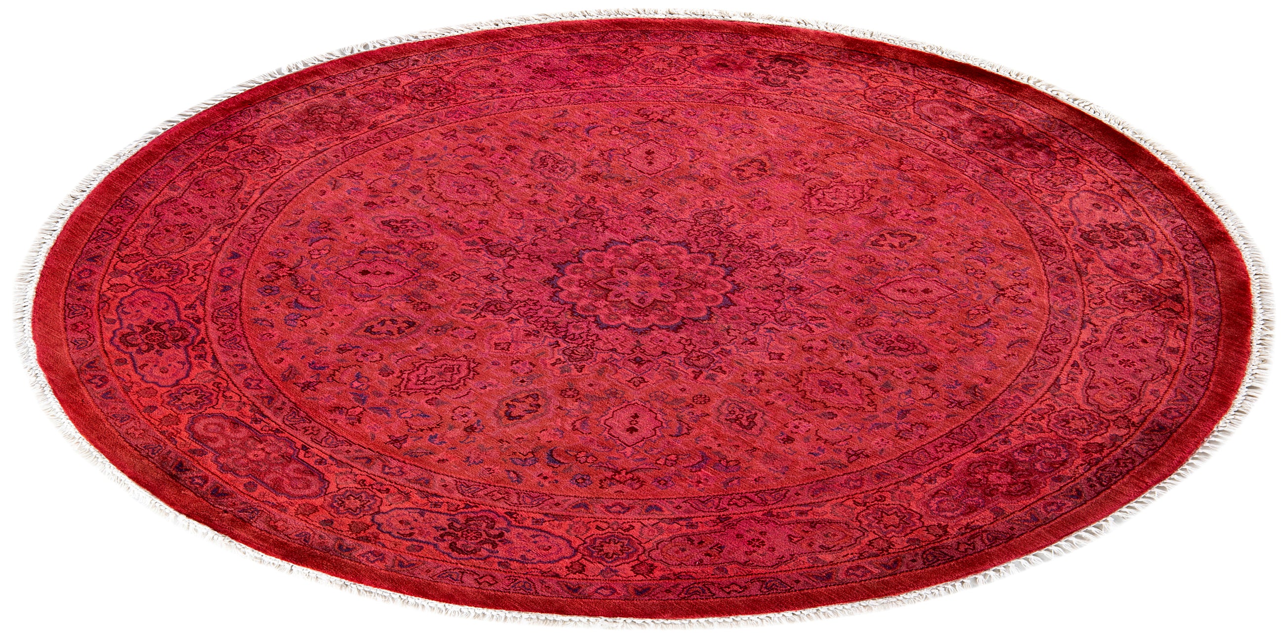 Contemporary Hand-Knotted Overdyed Pink Round Area Rug 4' 3" x 4' 3"