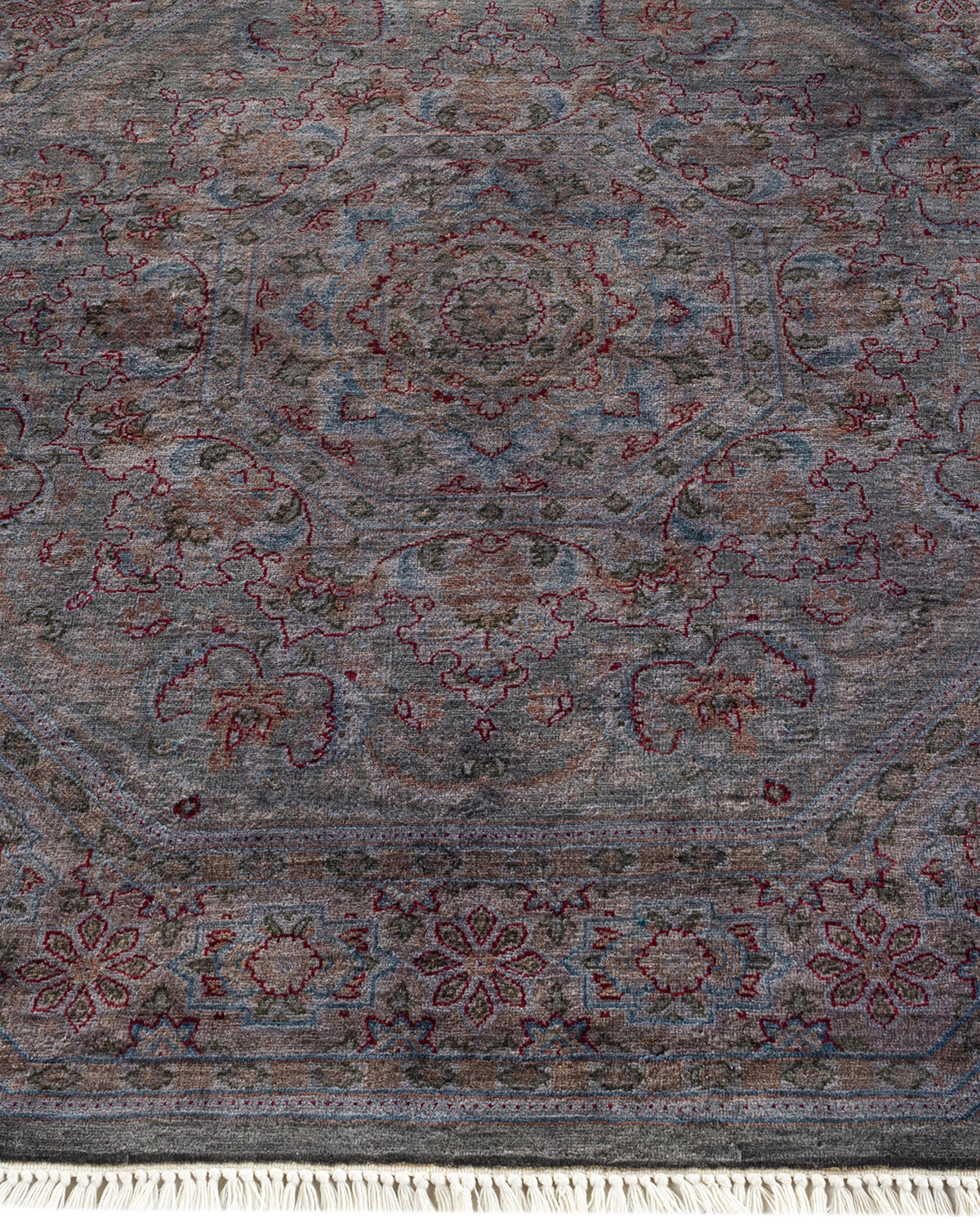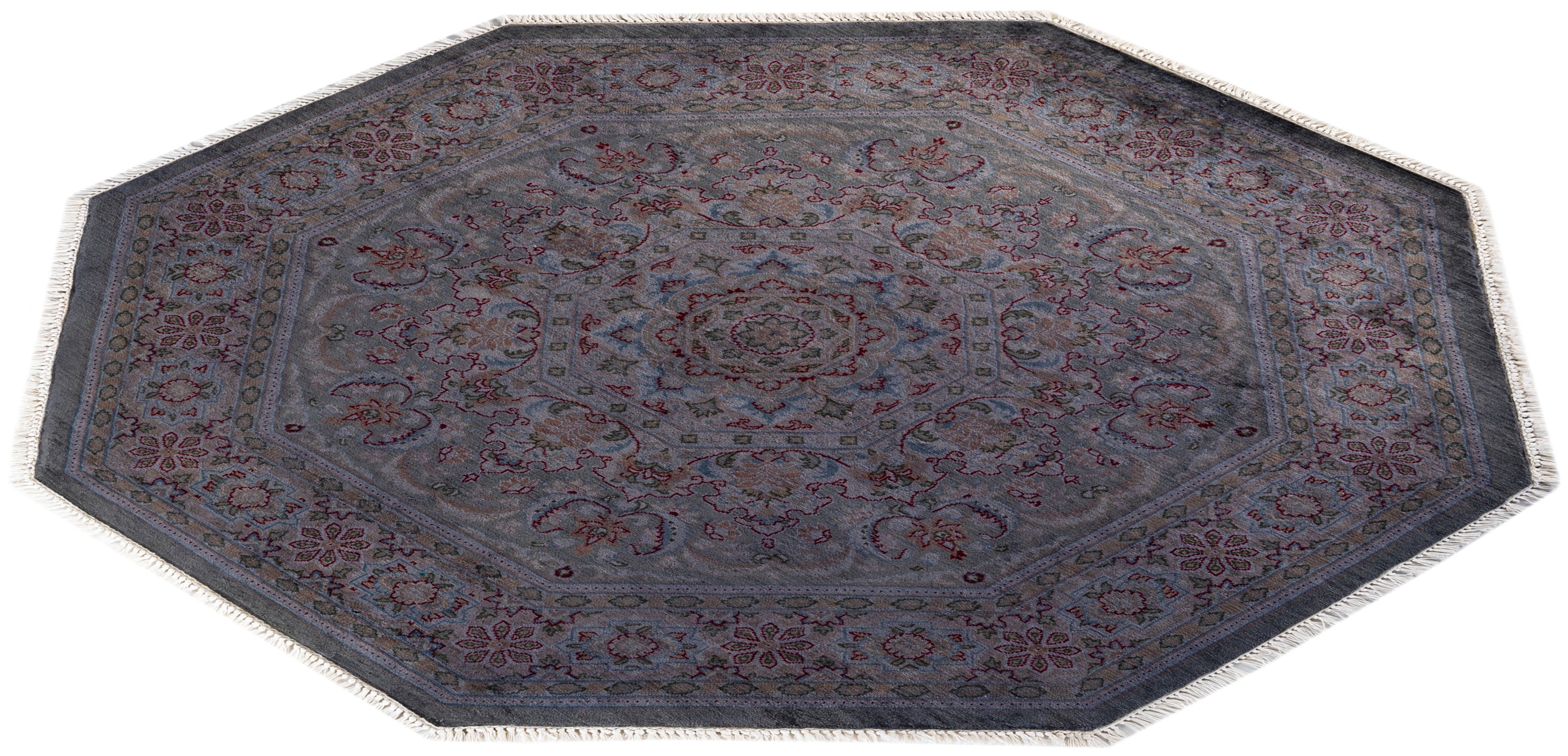 Contemporary Hand-Knotted Overdyed Gray Octagon Area rug 4' 4" x 4' 4"