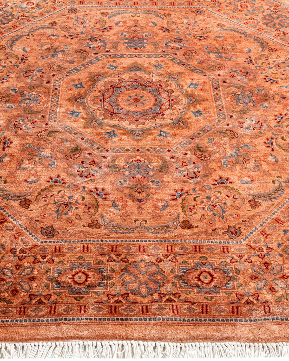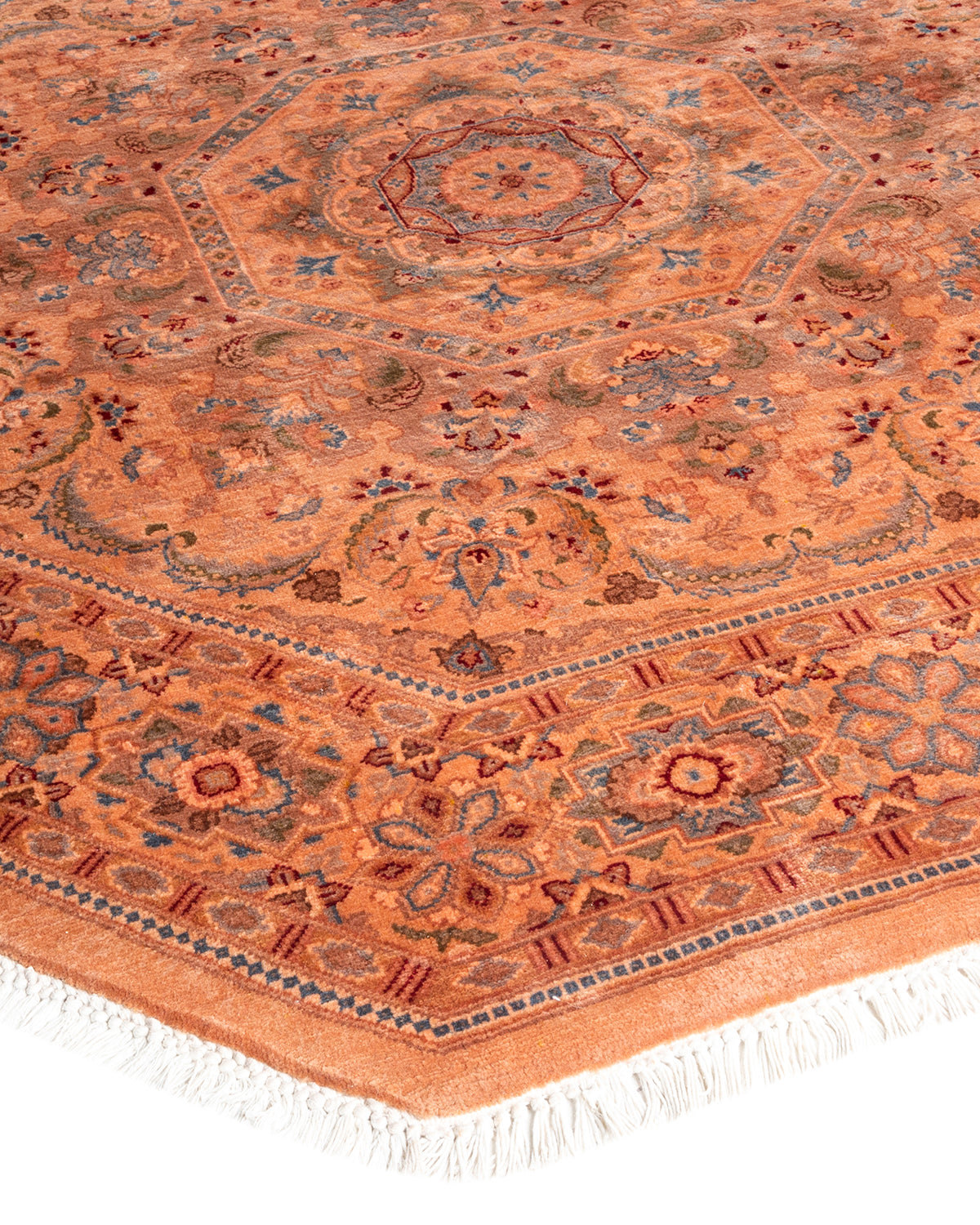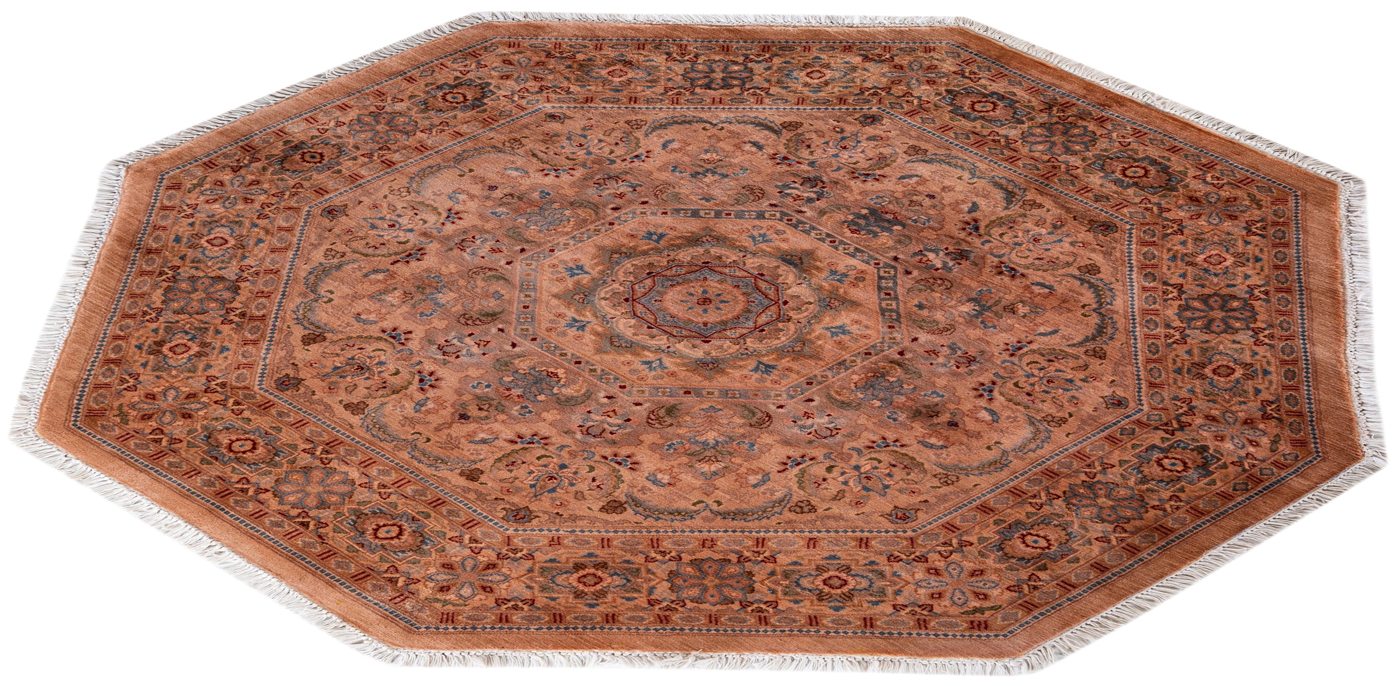 Contemporary Hand-Knotted Overdyed Pink Octagon Area rug 4' 3" x 4' 4"