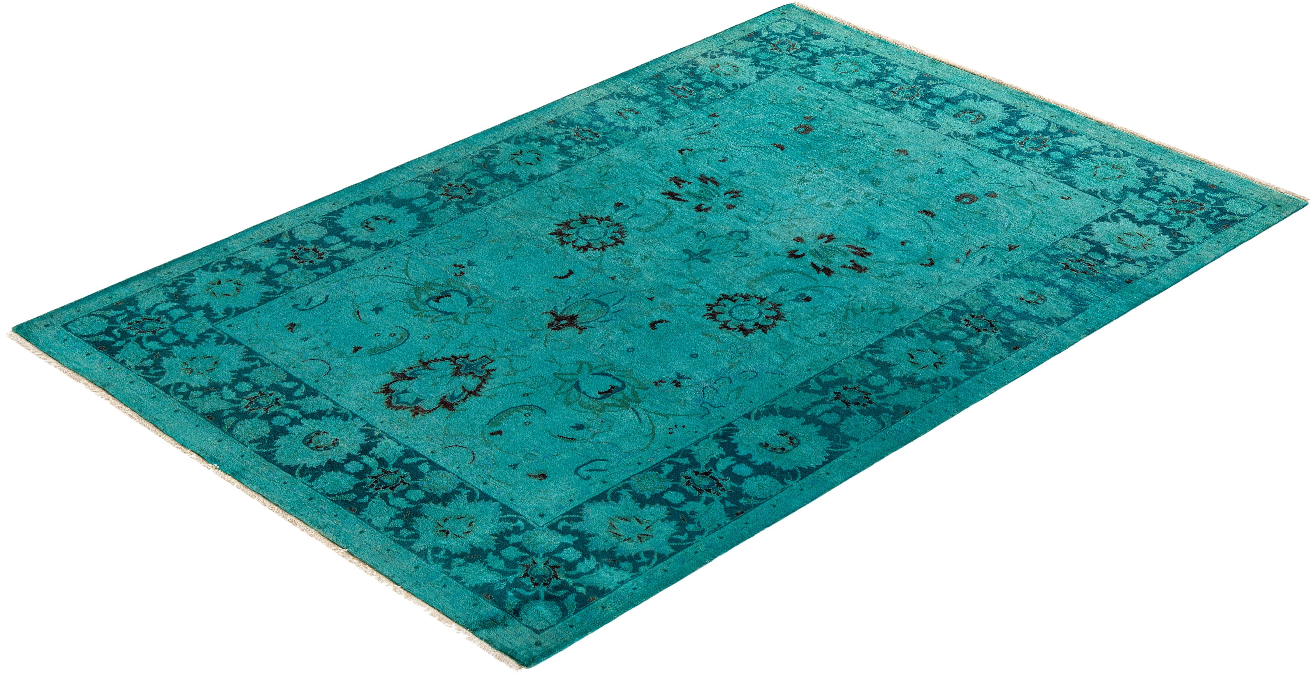 Contemporary Hand-Knotted Blue Area Rug 4' 0" x 6' 0"