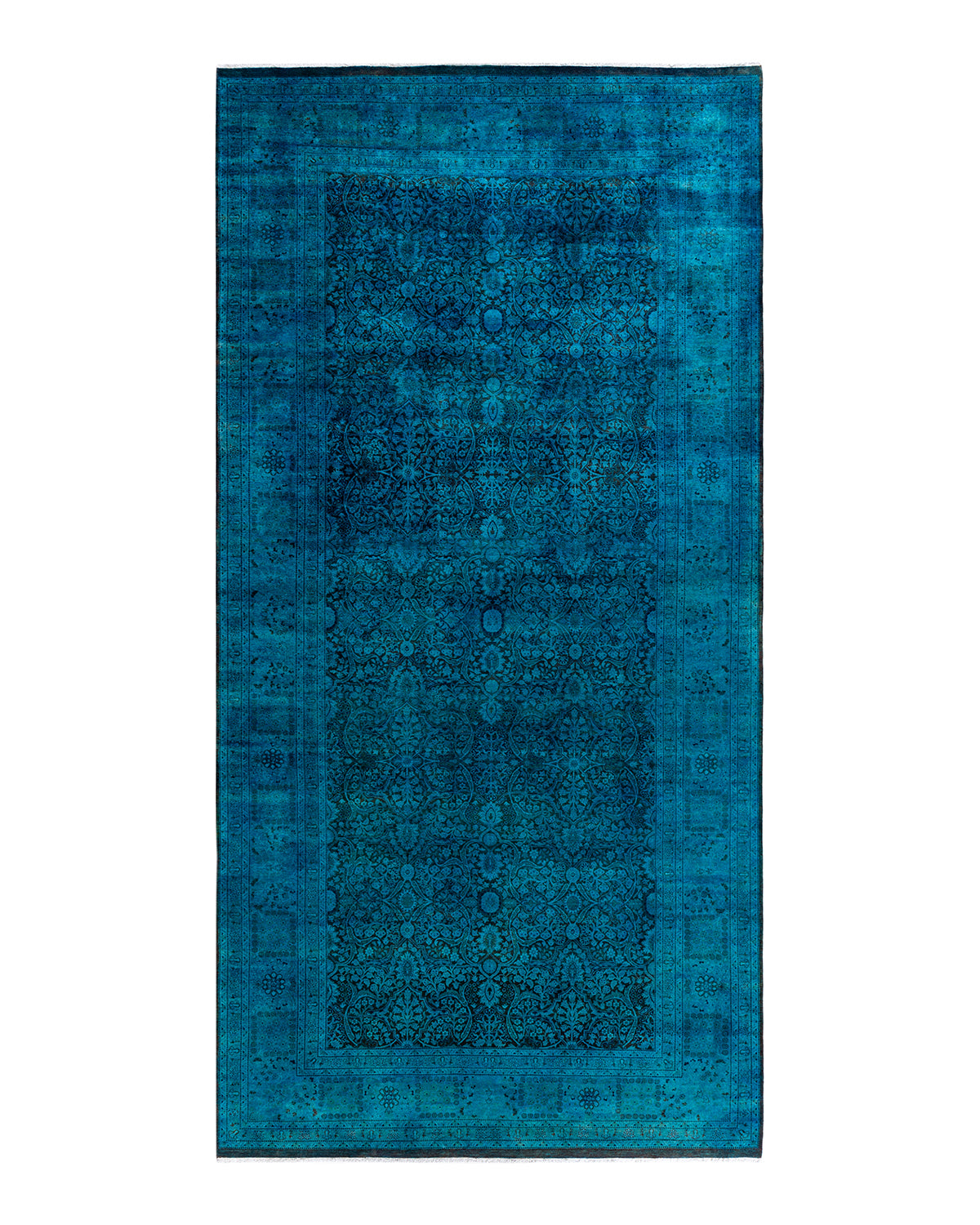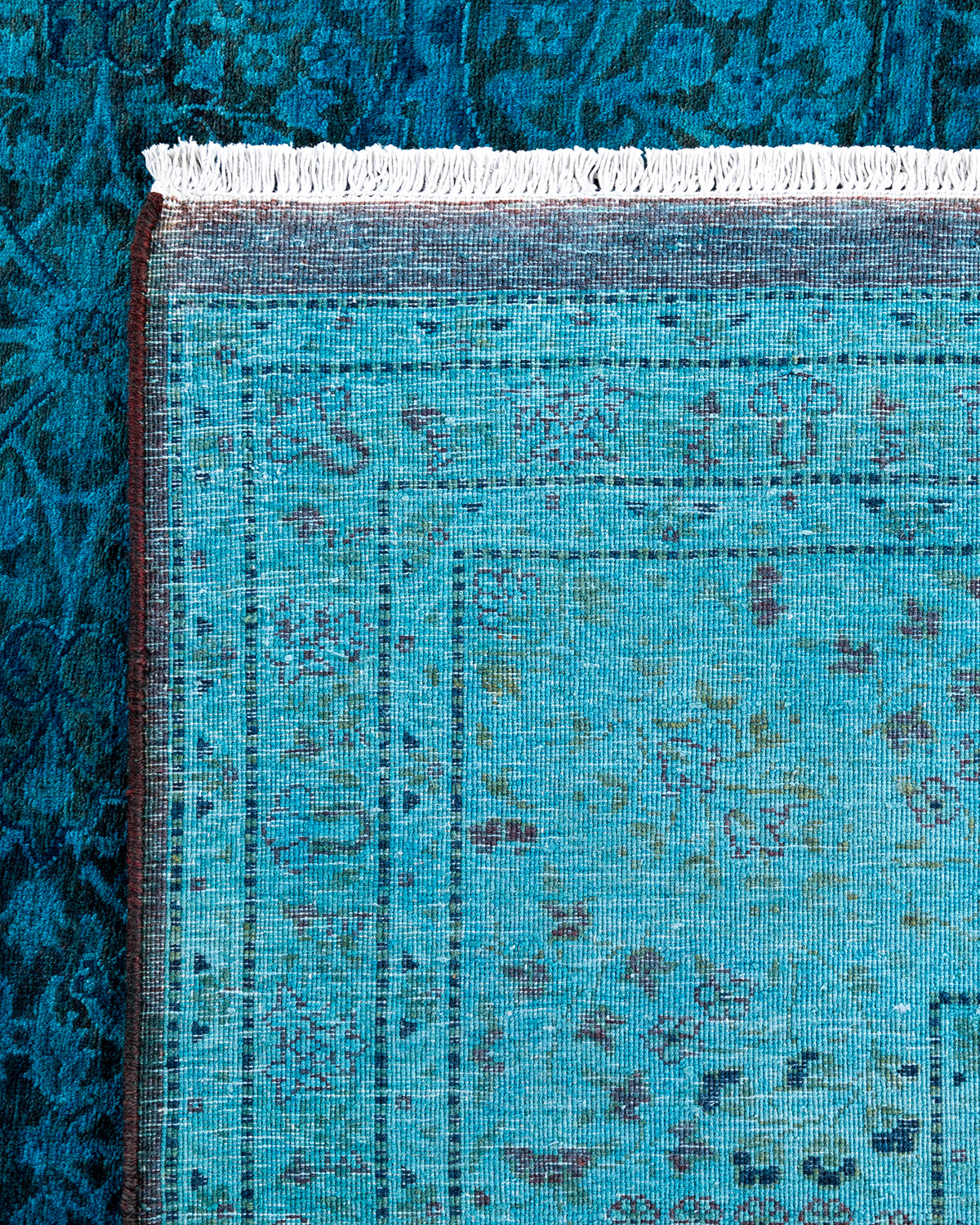 Contemporary Hand-Knotted Overdyed Blue Area Rug 6' 1" x 12' 2"