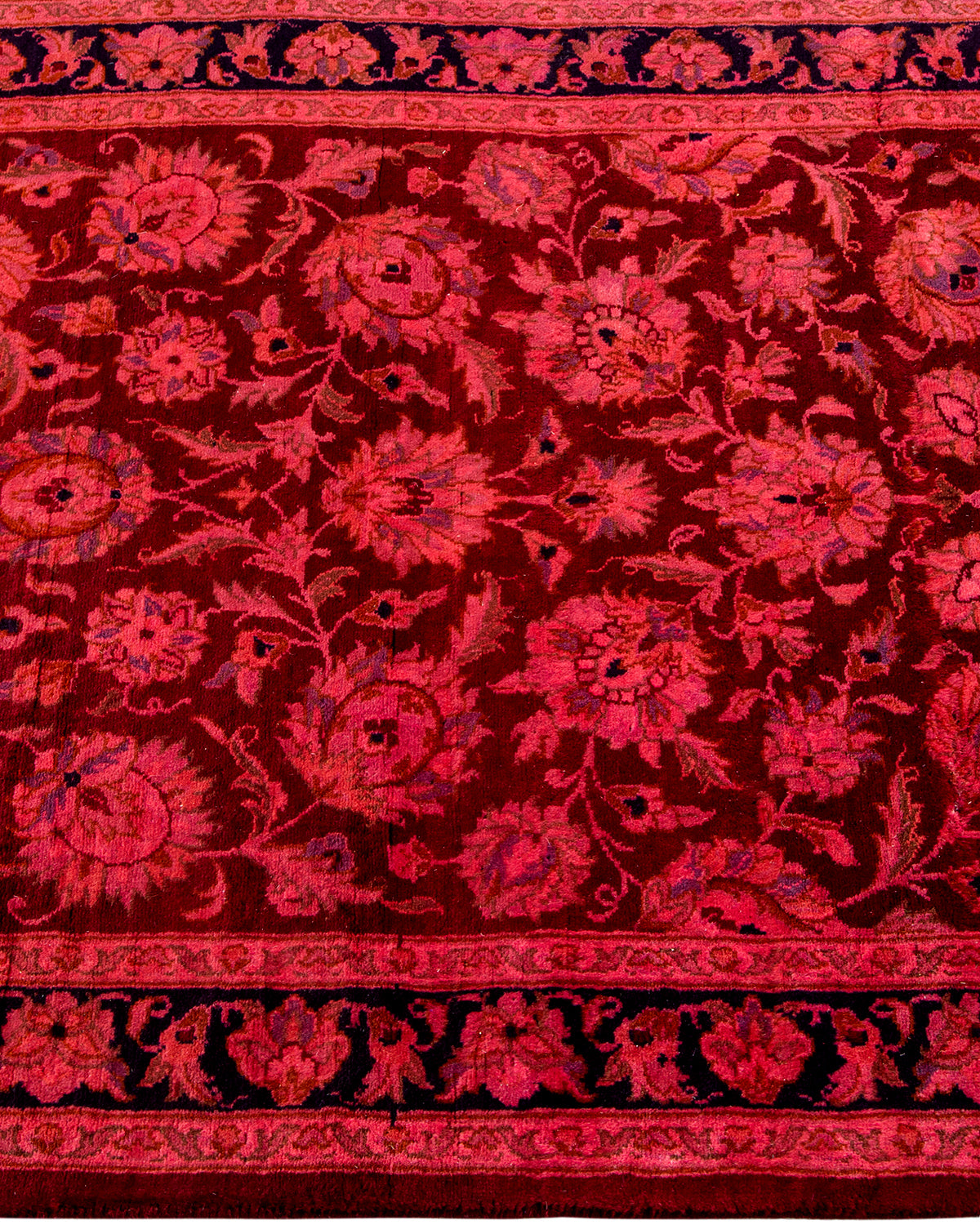 Overdyed rugs epitomize classic with a twist: traditional patterns overdyed in brilliant color. Each hand-knotted rug is washed in a 100%-natural botanical dye that reveals hidden nuances in the designs. These are rugs that transcend trends, and their sturdy construction ensures that they’ll withstand years of heavy traffic.