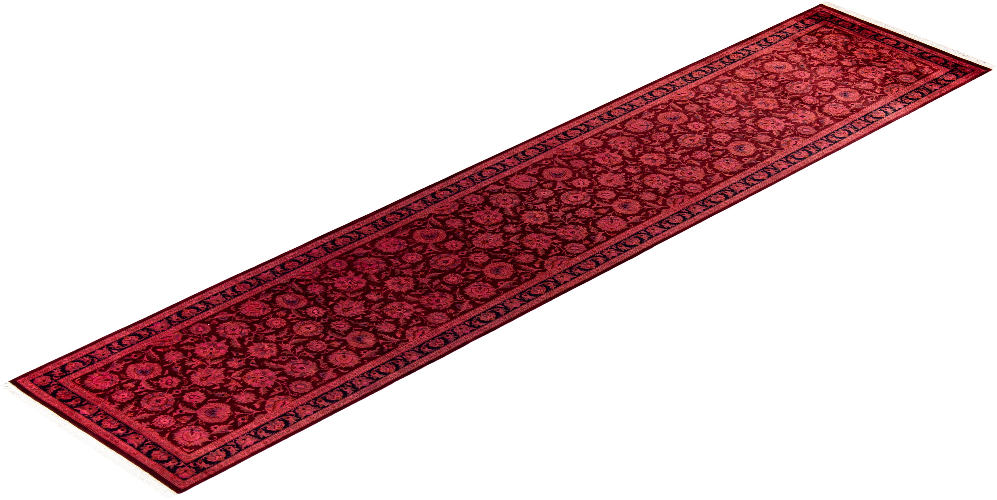 Contemporary Hand-Knotted Overdyed Pink Runner 2' 6" x 12' 3"