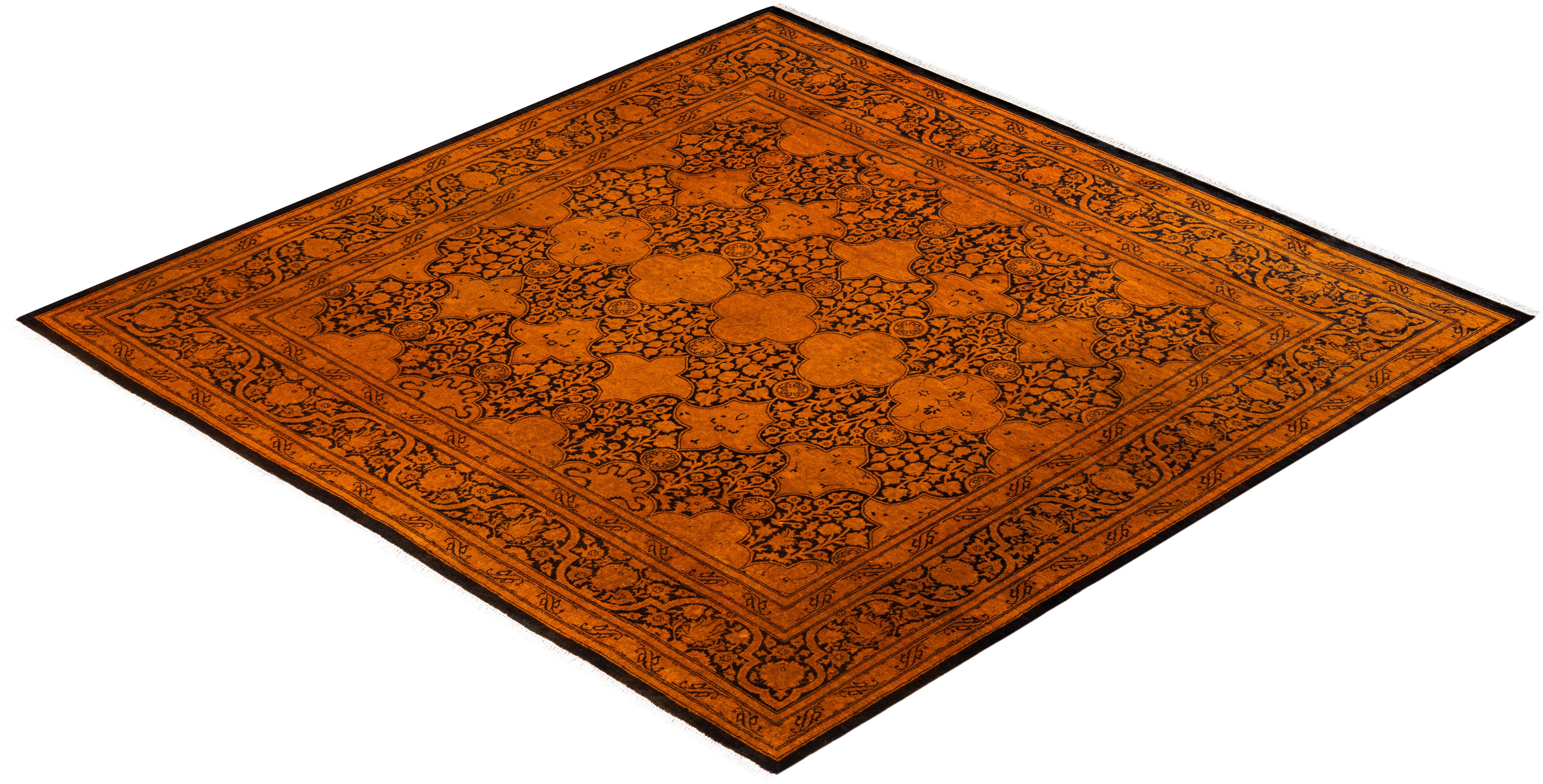 Contemporary Hand-Knotted Overdyed Gold Square Area Rug 6' 1" x 6' 1"