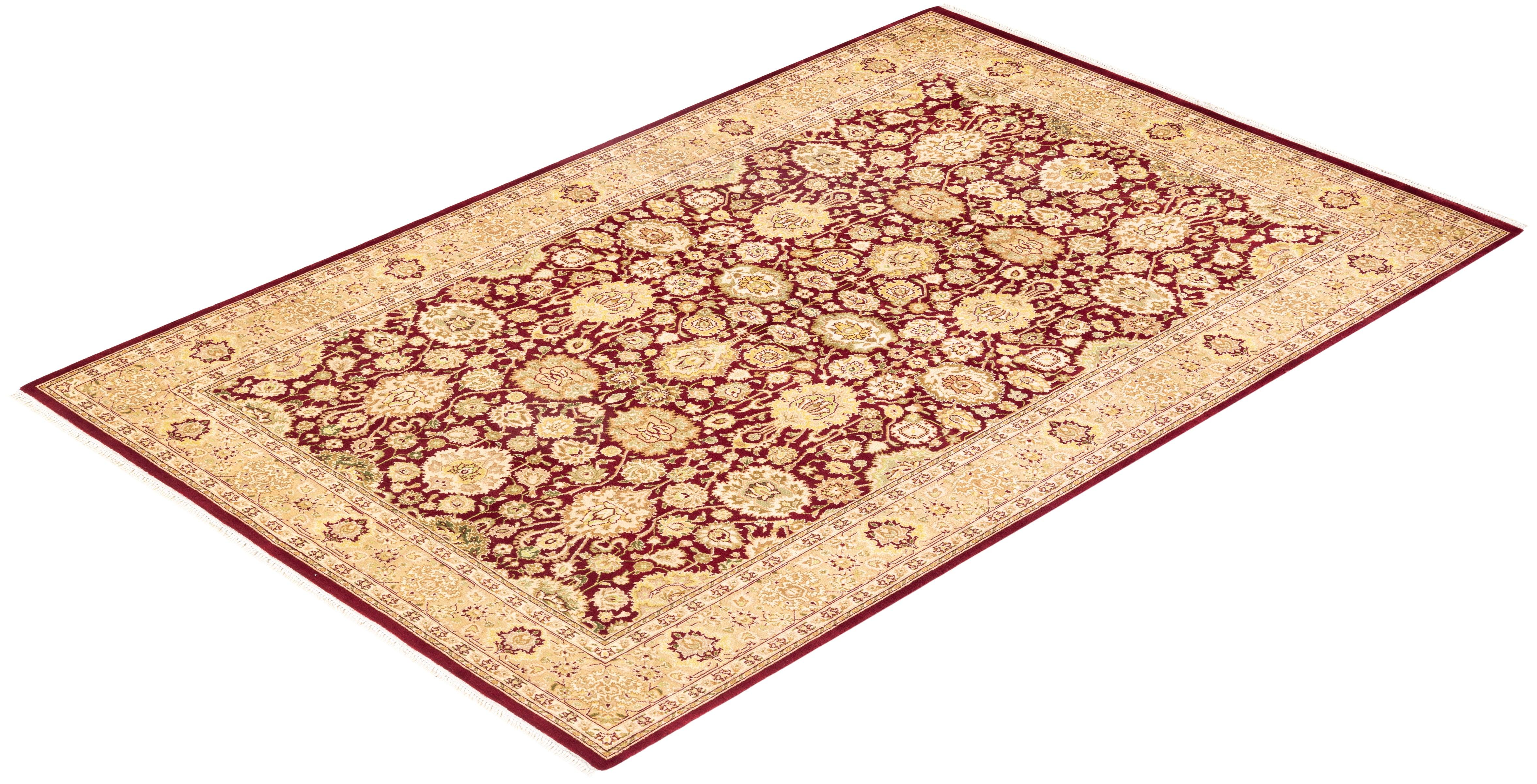Traditional Hand Knotted Mogul Oriental Red Area Rug 4' 9" x 7' 4"
