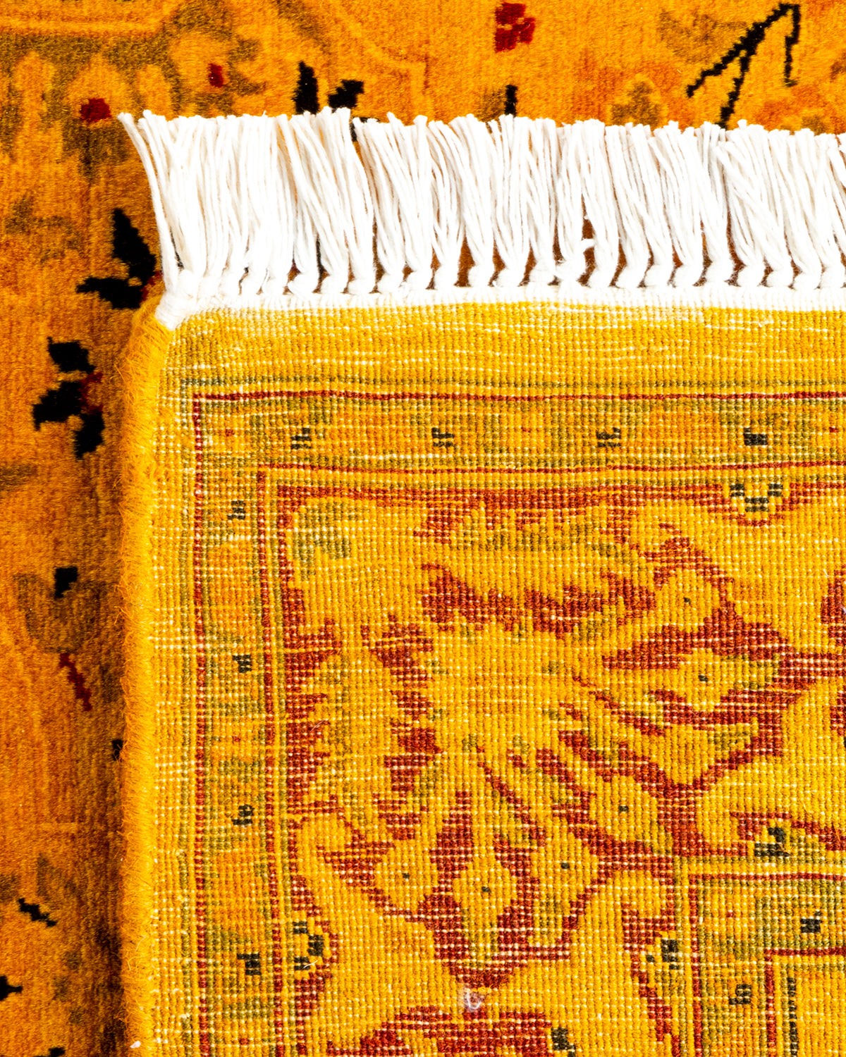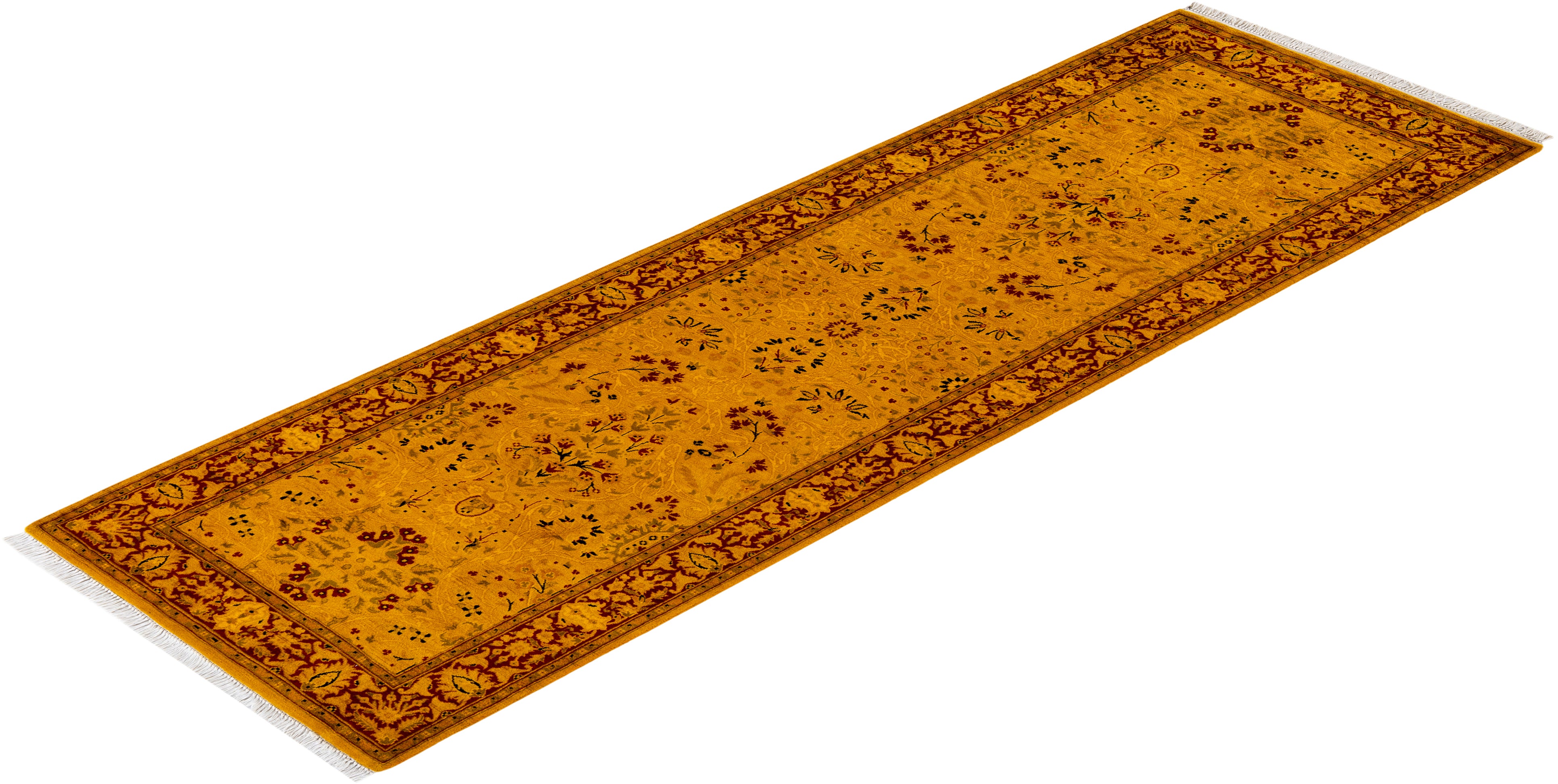 Contemporary Hand-Knotted Overdyed Yellow Runner 2' 7" x 8' 2"