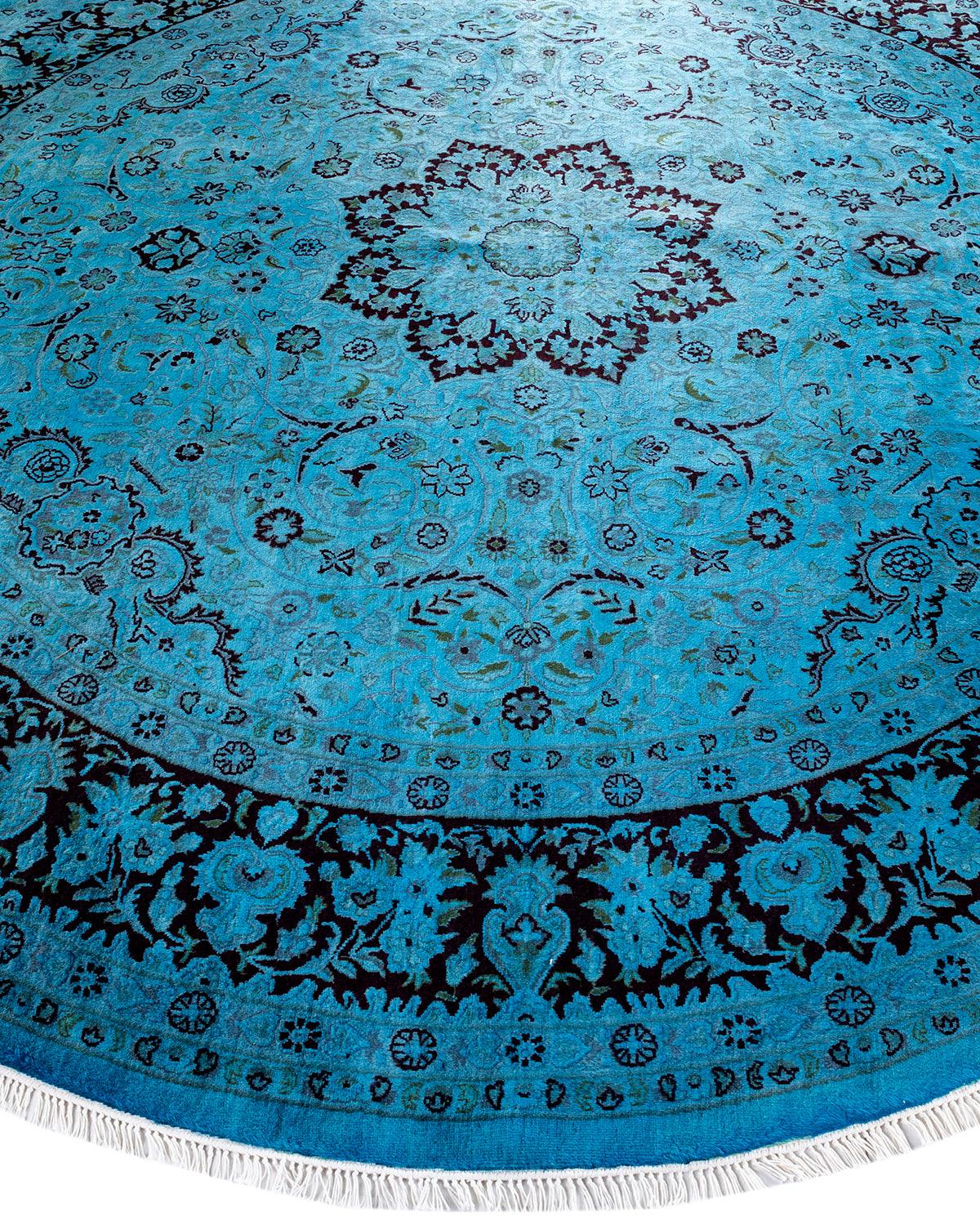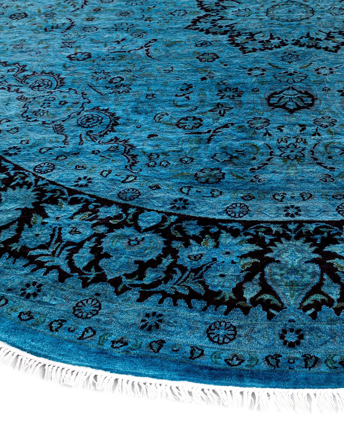 Contemporary Hand-Knotted Blue Round Area Rug 8' 1" x 8' 2"
