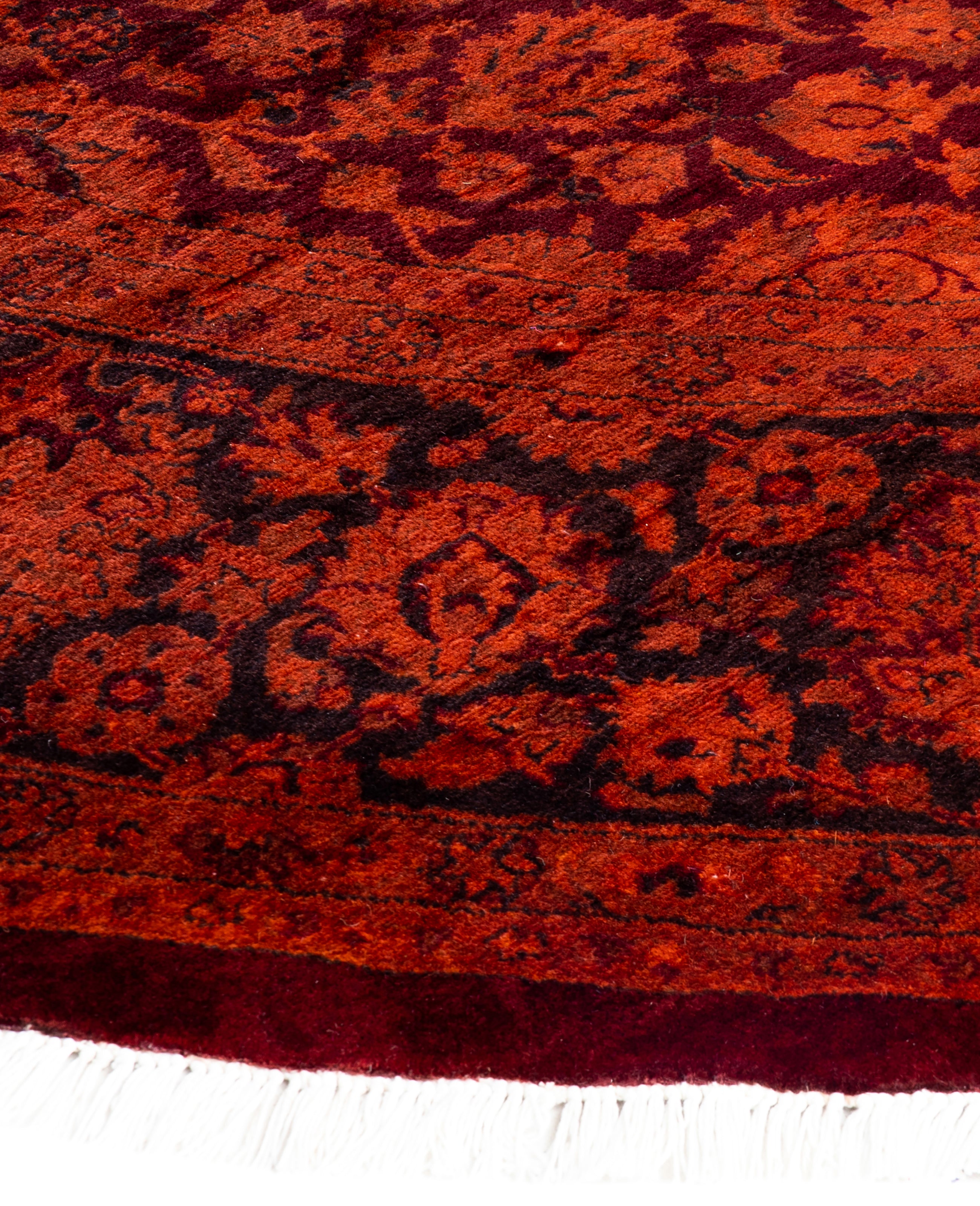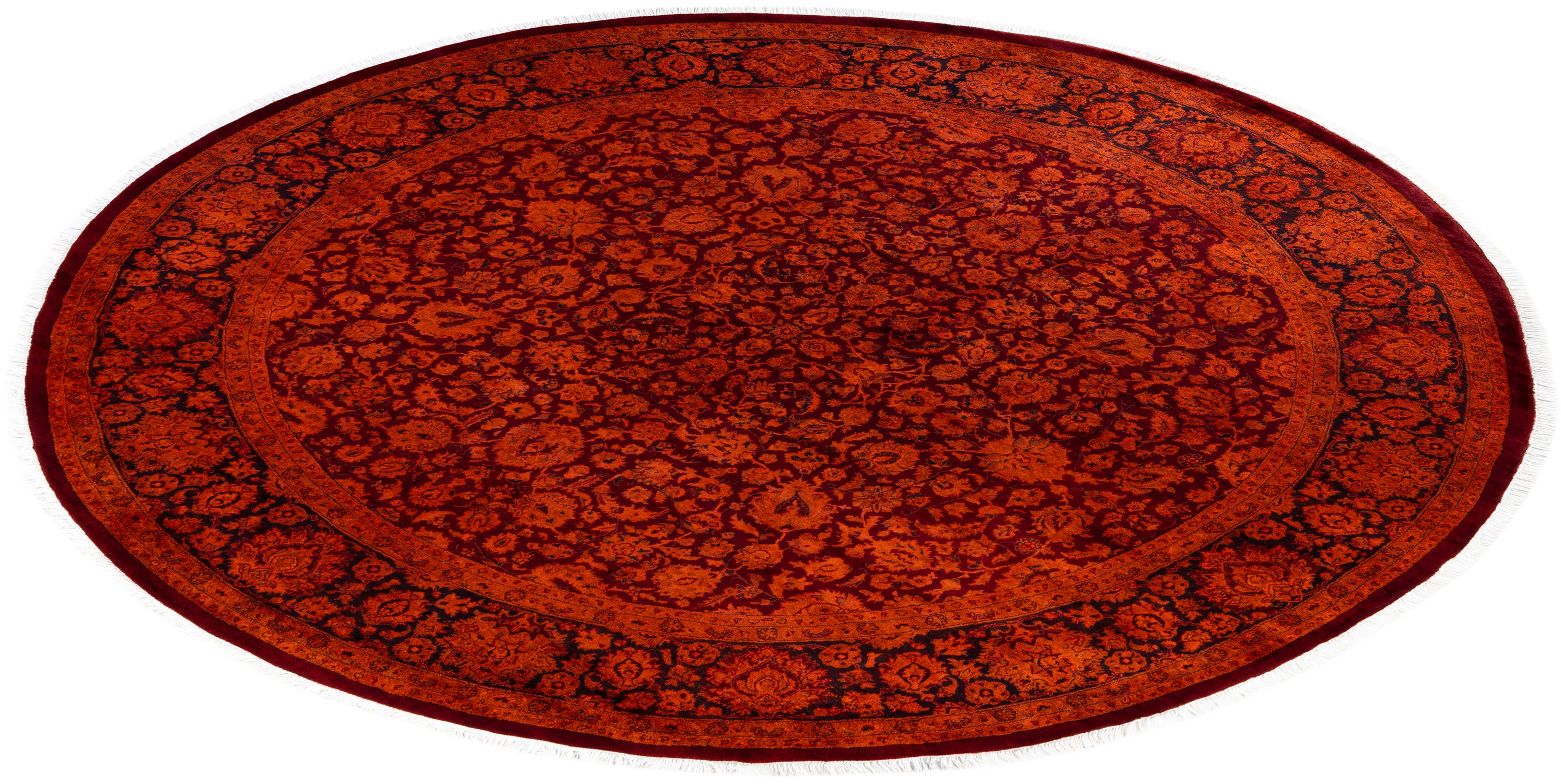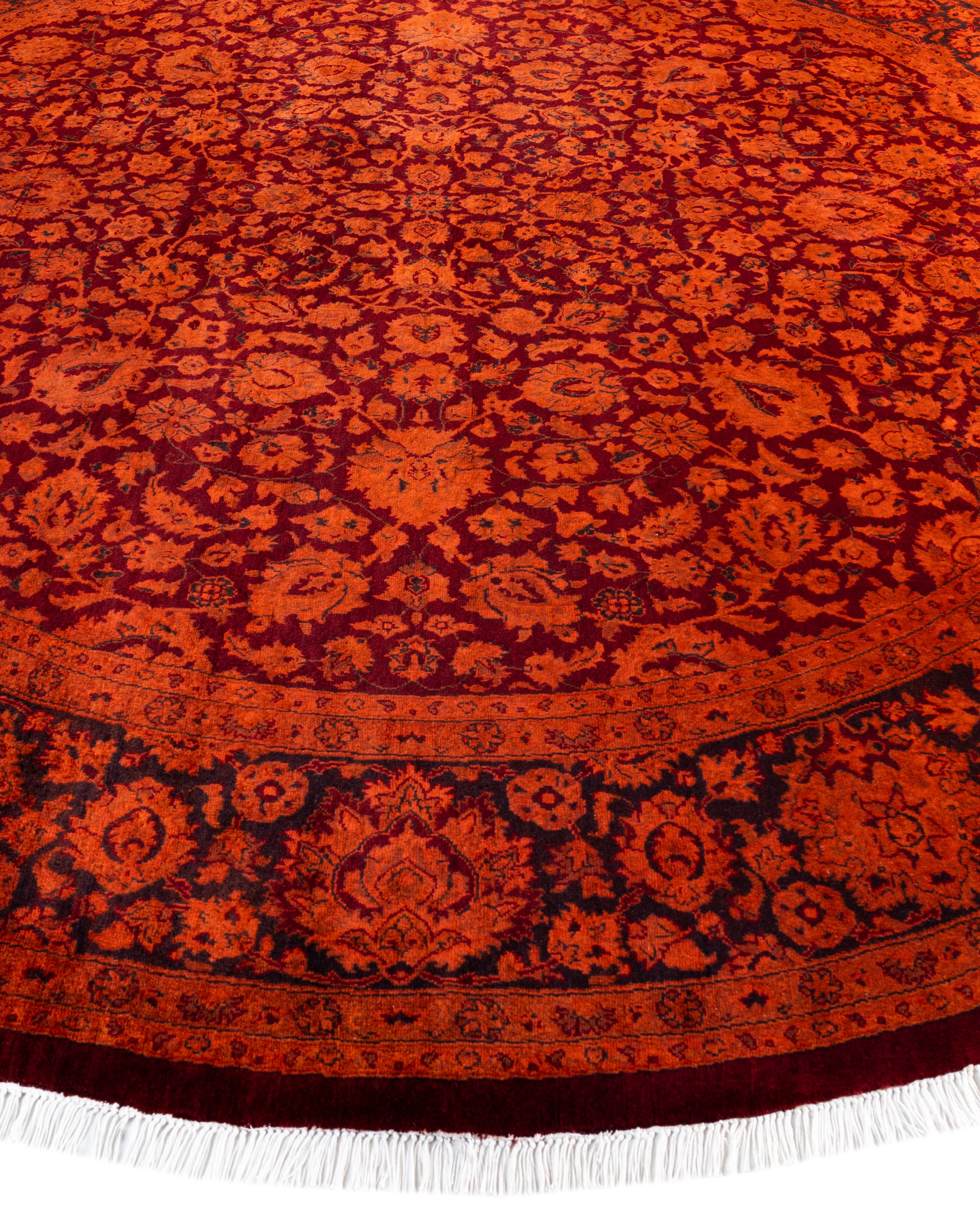 Contemporary Overdyed Wool Hand Knotted Orange Round Area Rug 8' 2" x 8' 2"