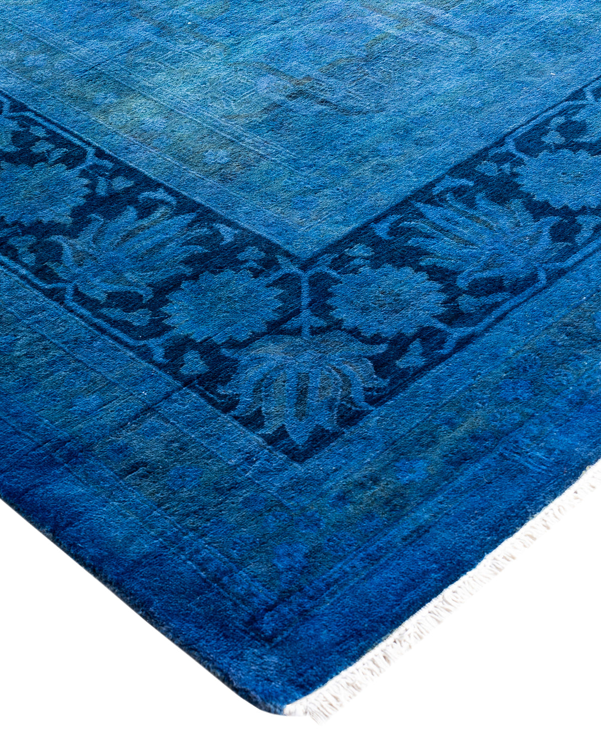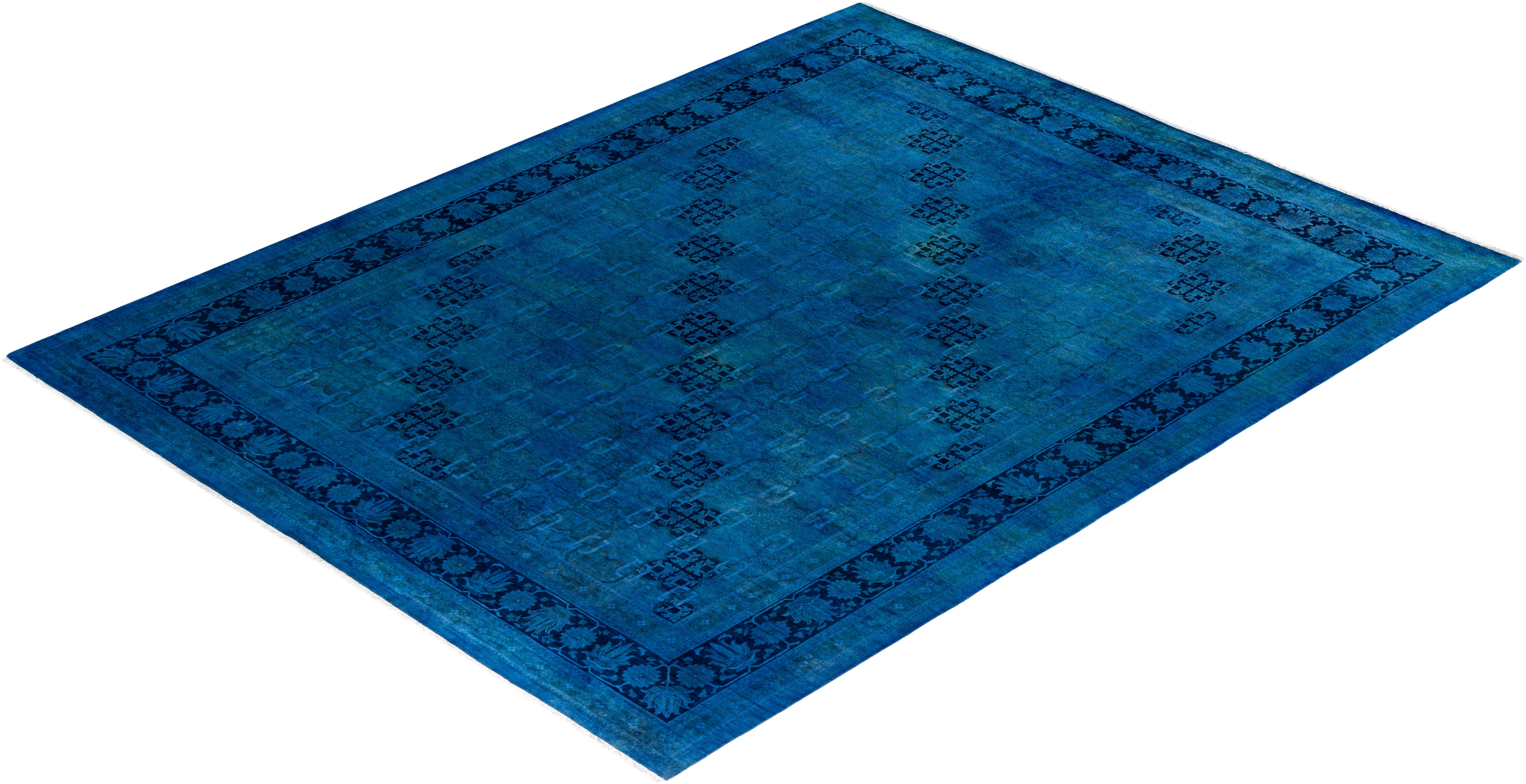 Contemporary Hand-Knotted Overdyed Blue Area Rug 7' 10" x 10' 2"