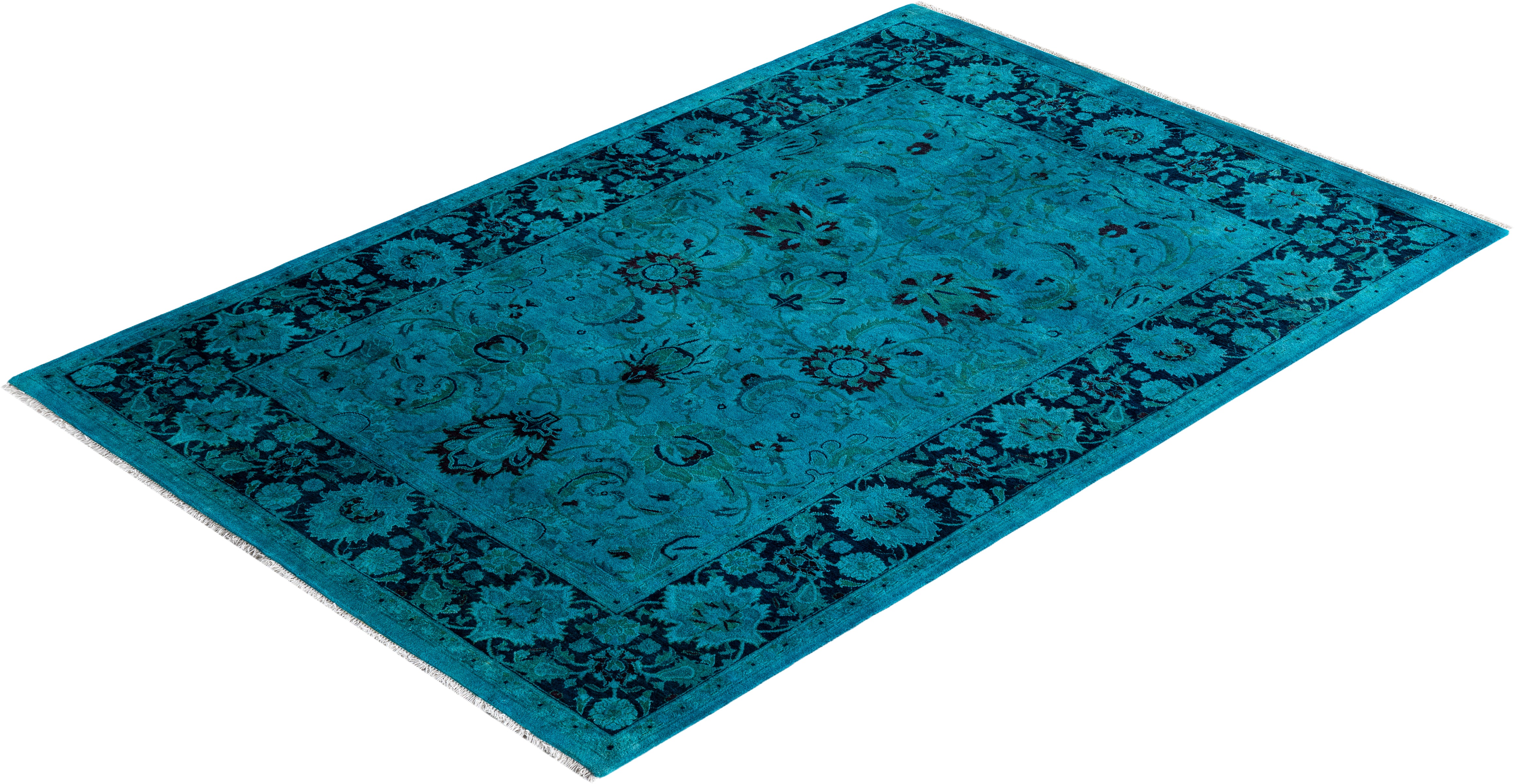 Contemporary Hand-Knotted Overdyed Blue Area Rug 4' 0" x 6' 1"