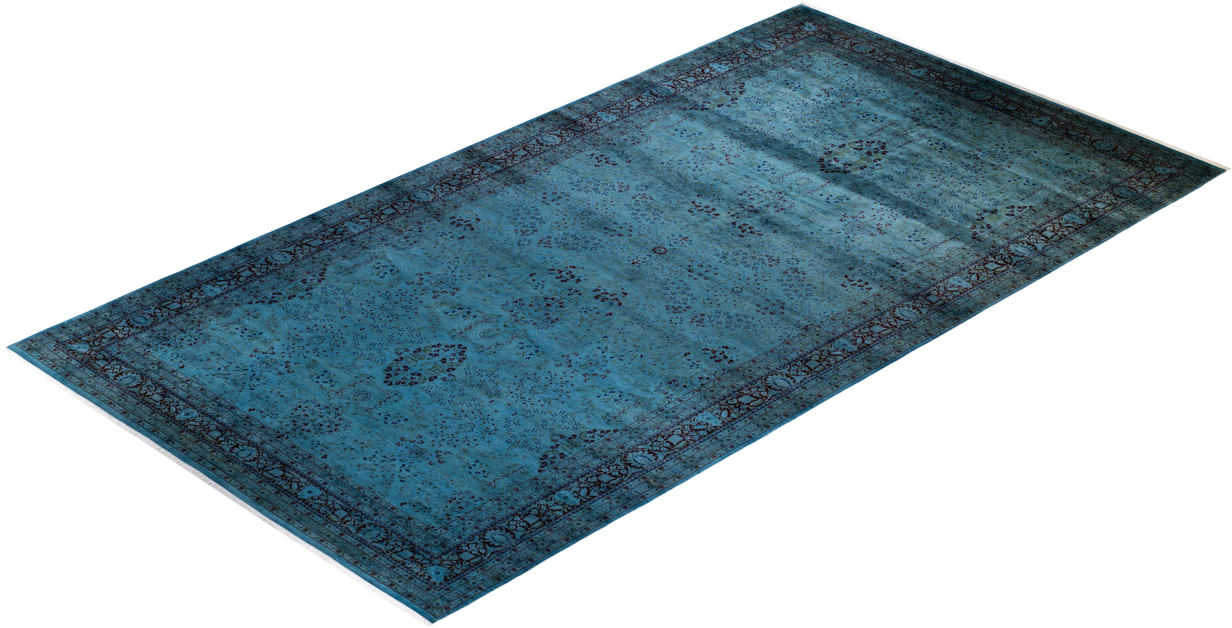 Contemporary Hand-Knotted Blue Area Rug 9' 2" x 17' 8"
