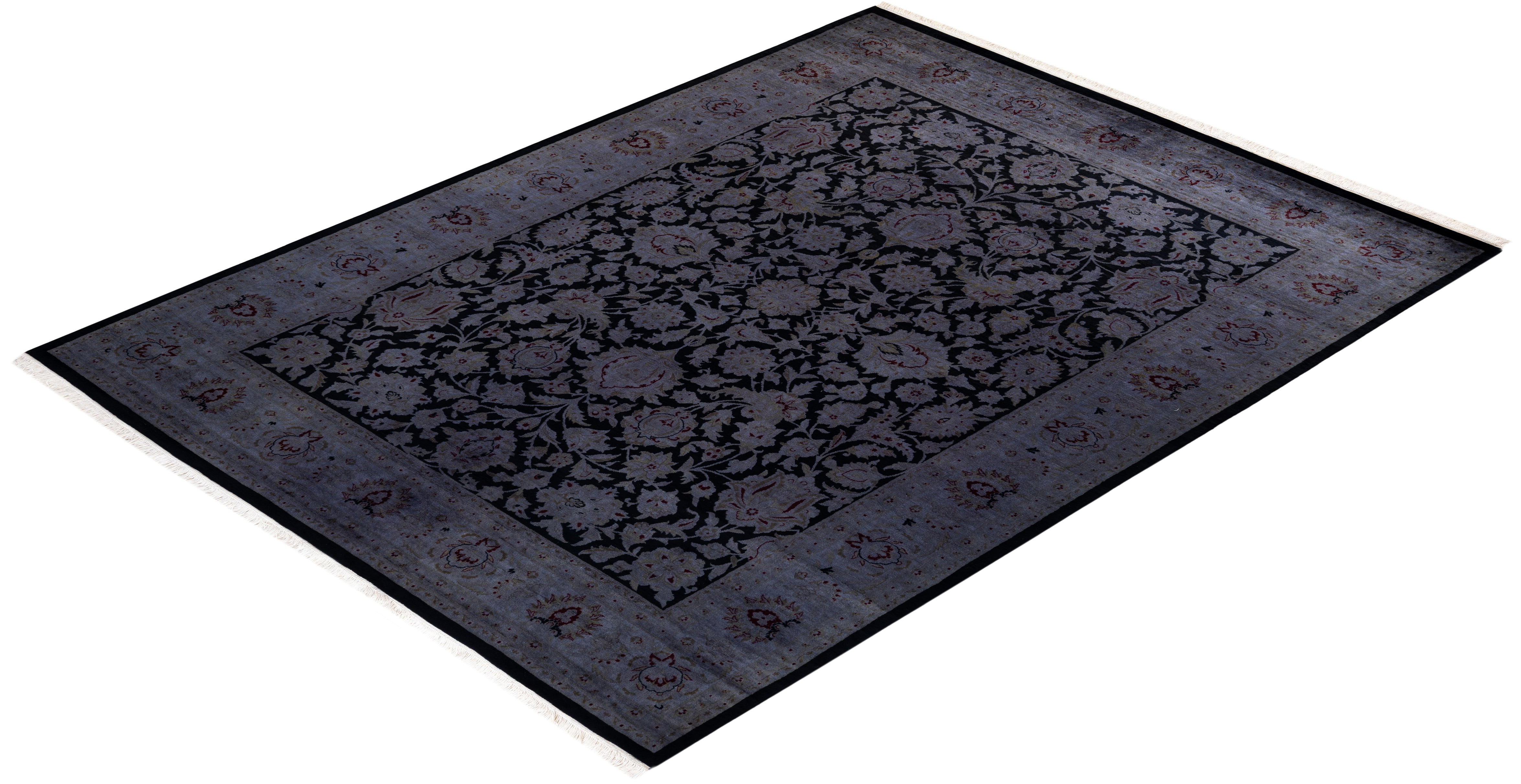 Contemporary Hand Knotted Overdyed Gray Area Rug 6' 2" x 8' 3"