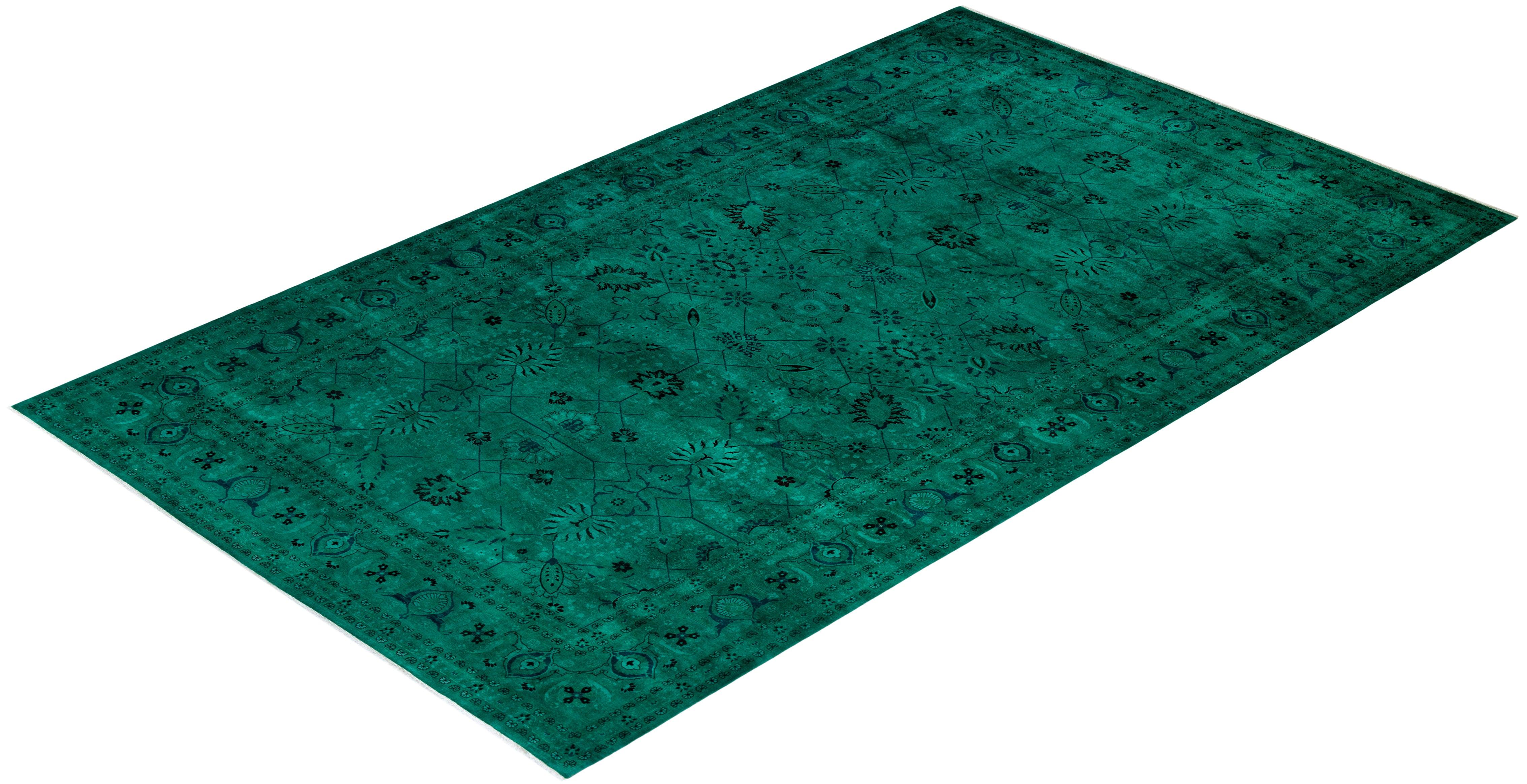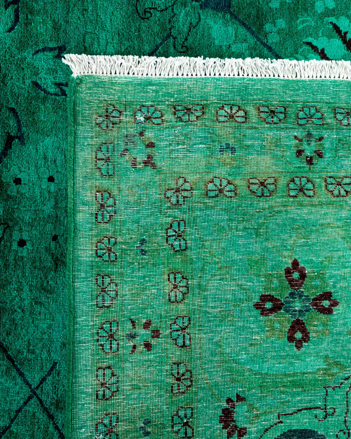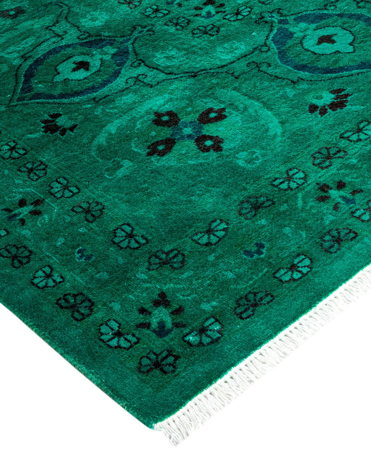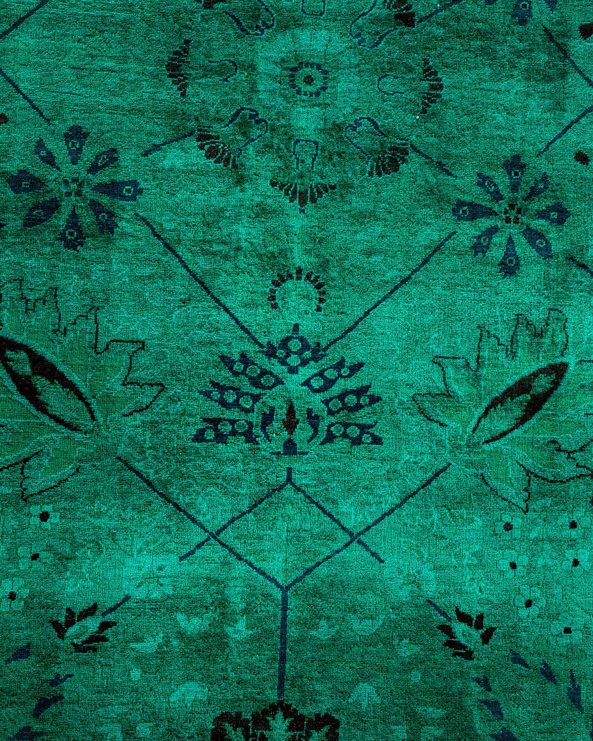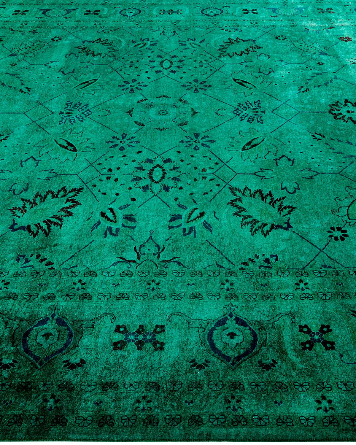 Contemporary Hand Knotted Overdyed Green Area Rug 13' 10" x 8' 2"