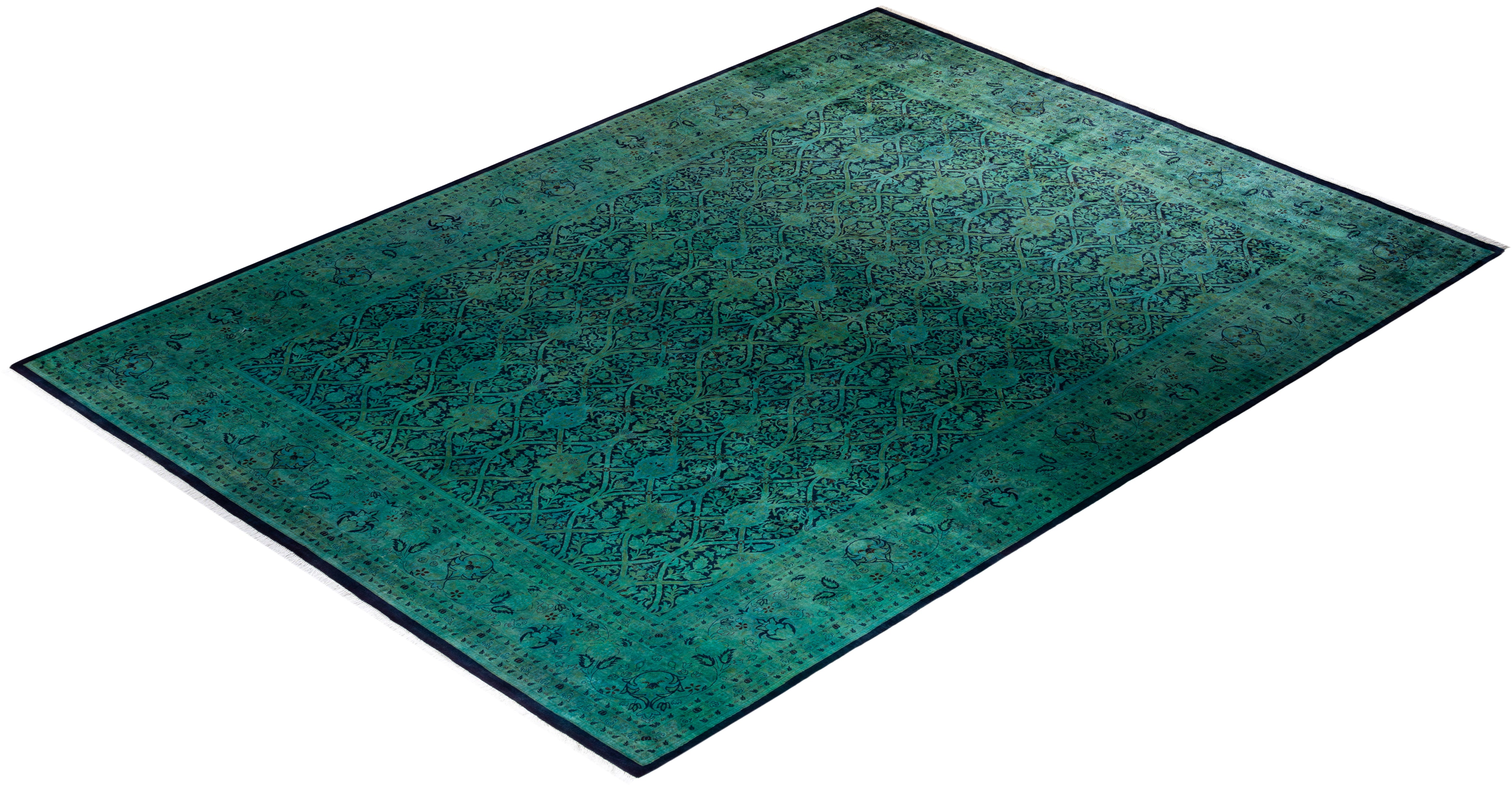 Contemporary Hand Knotted Overdyed Green Area Rug 10' 1" x 13' 10"