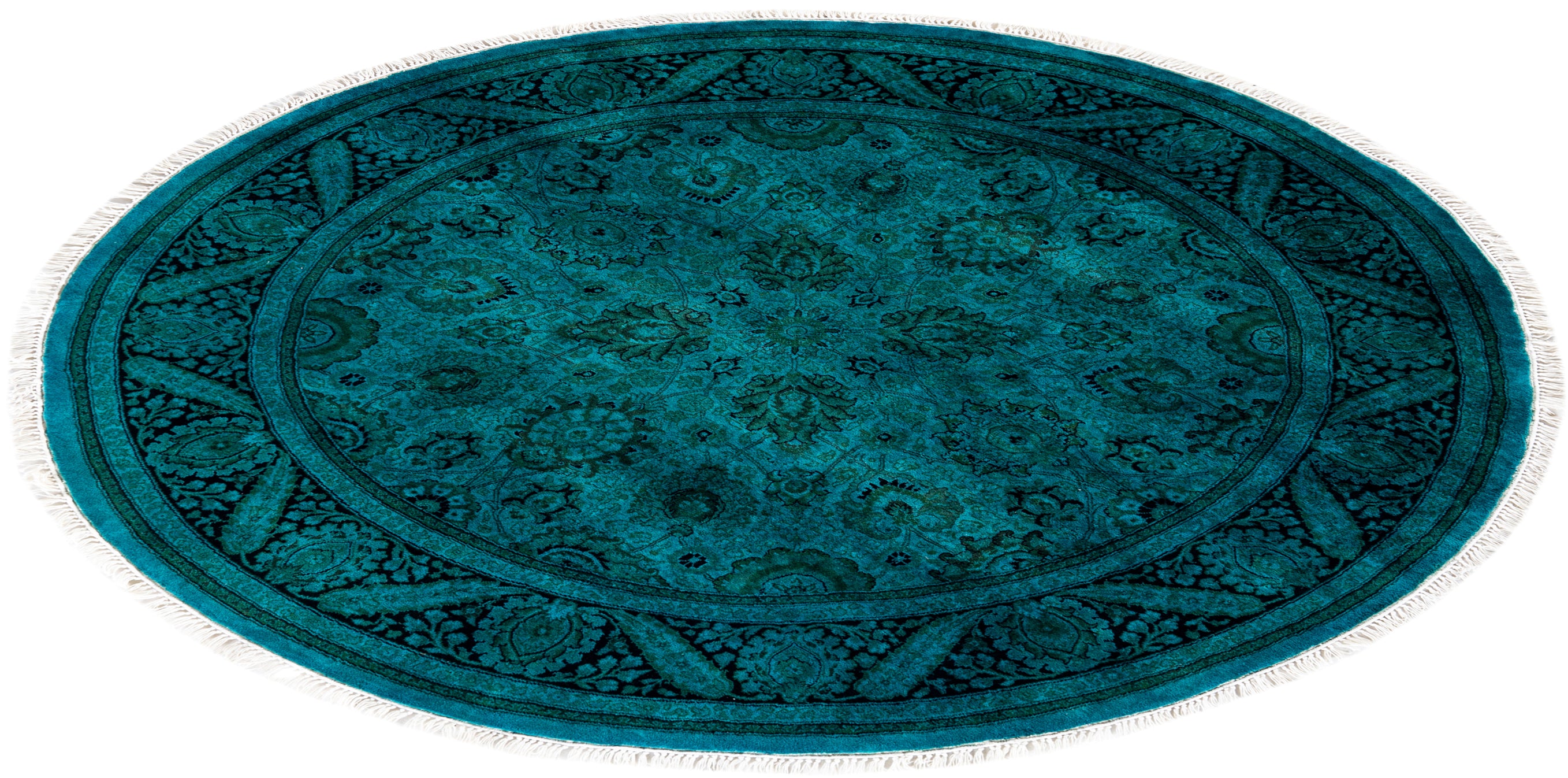 Contemporary Hand-Knotted Overdyed Blue Round Area Rug 5' 1" x 5' 1"