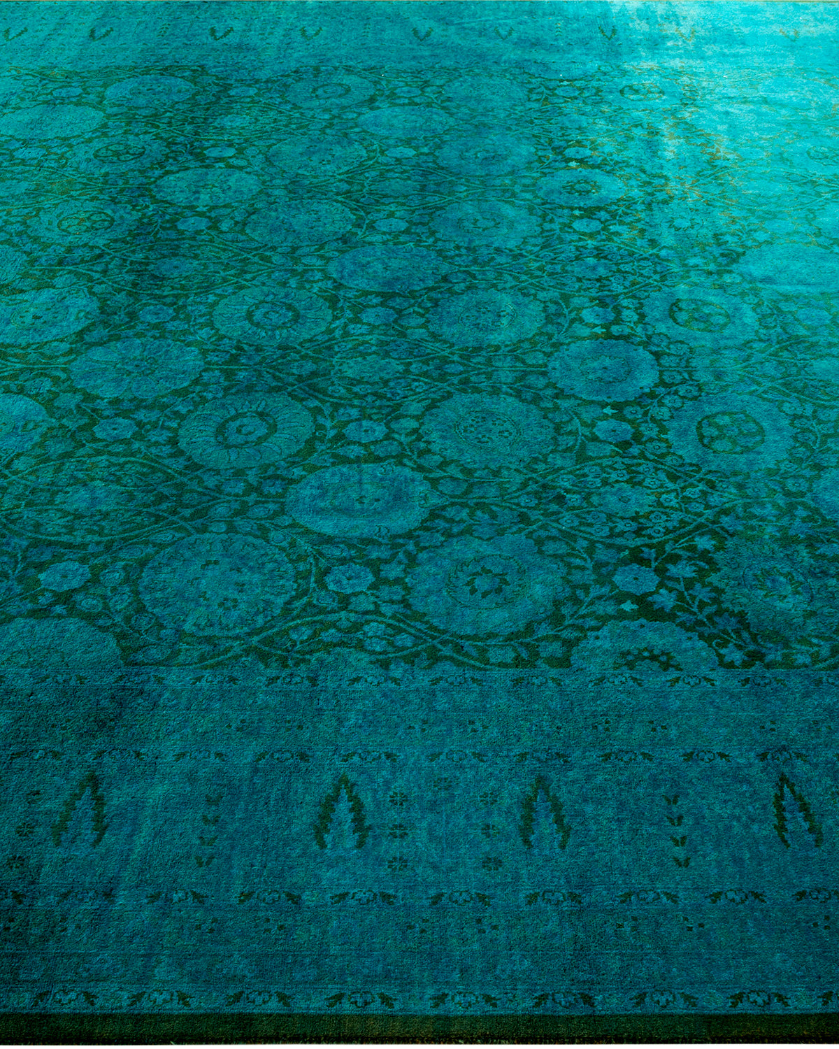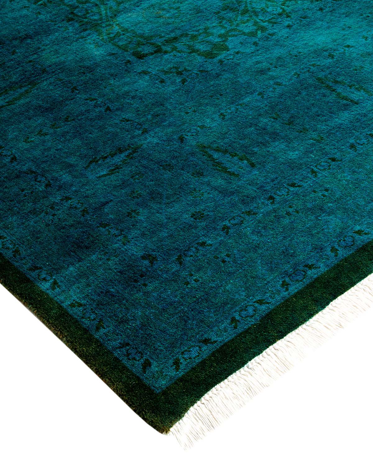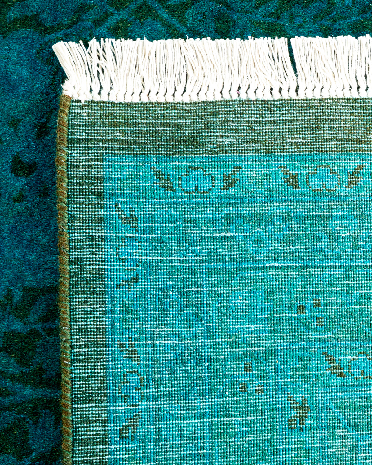 Contemporary Hand-Knotted Overdyed Green Area Rug 8' 2" x 14' 5"