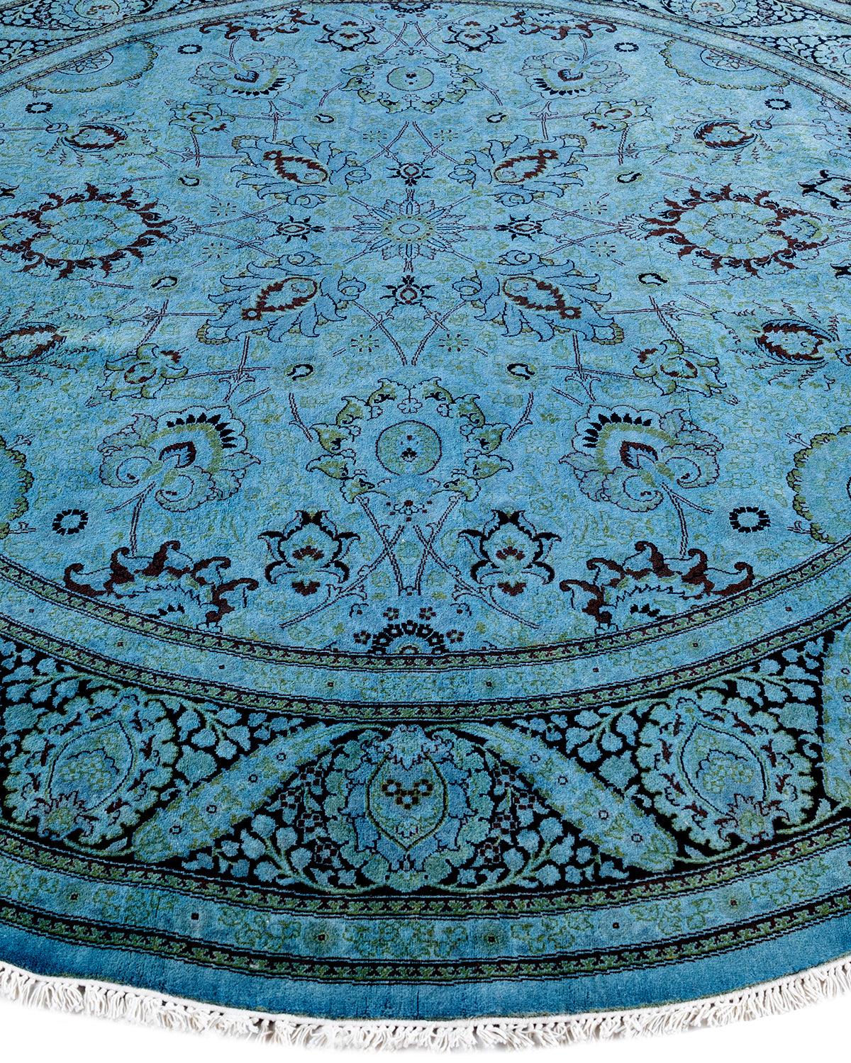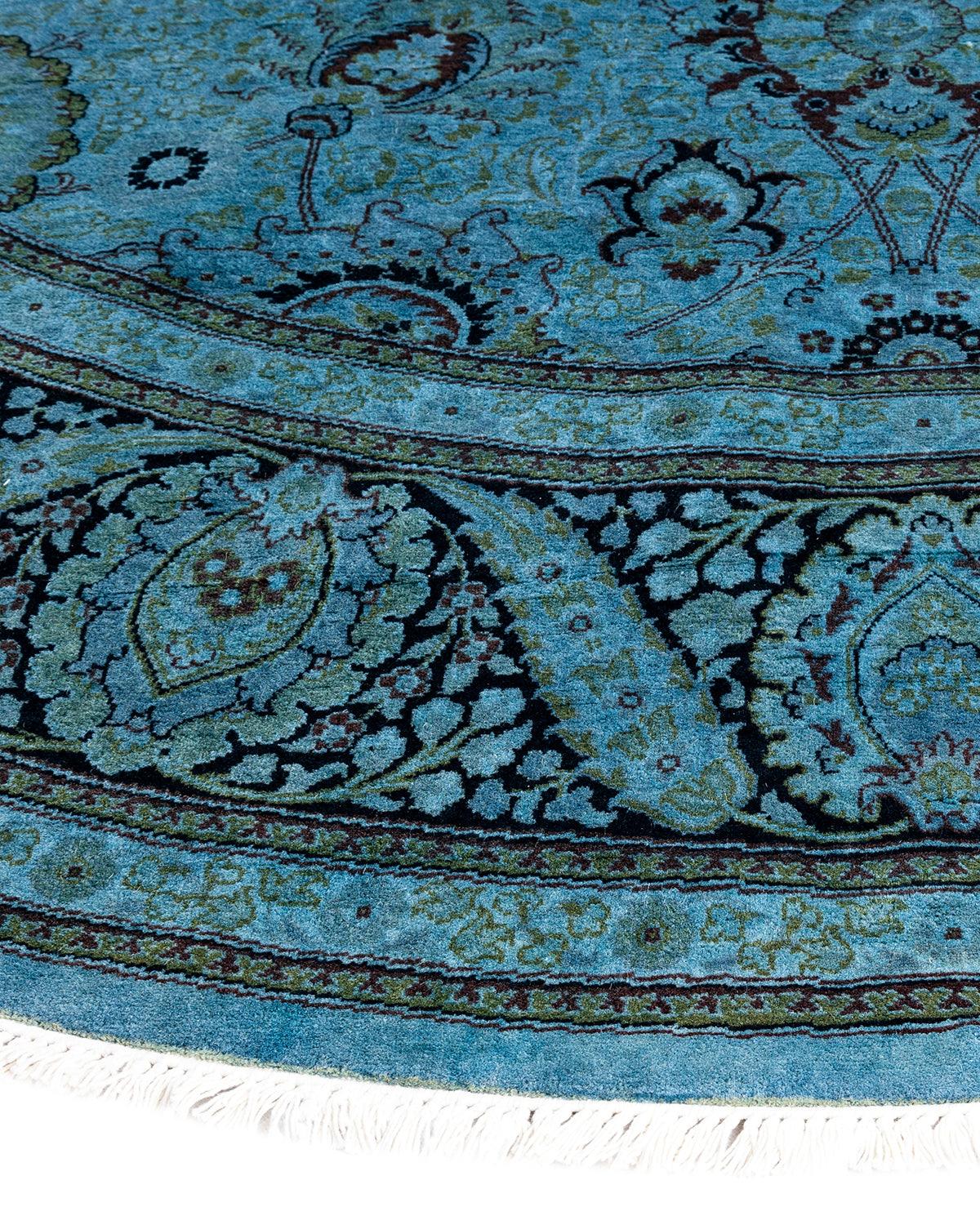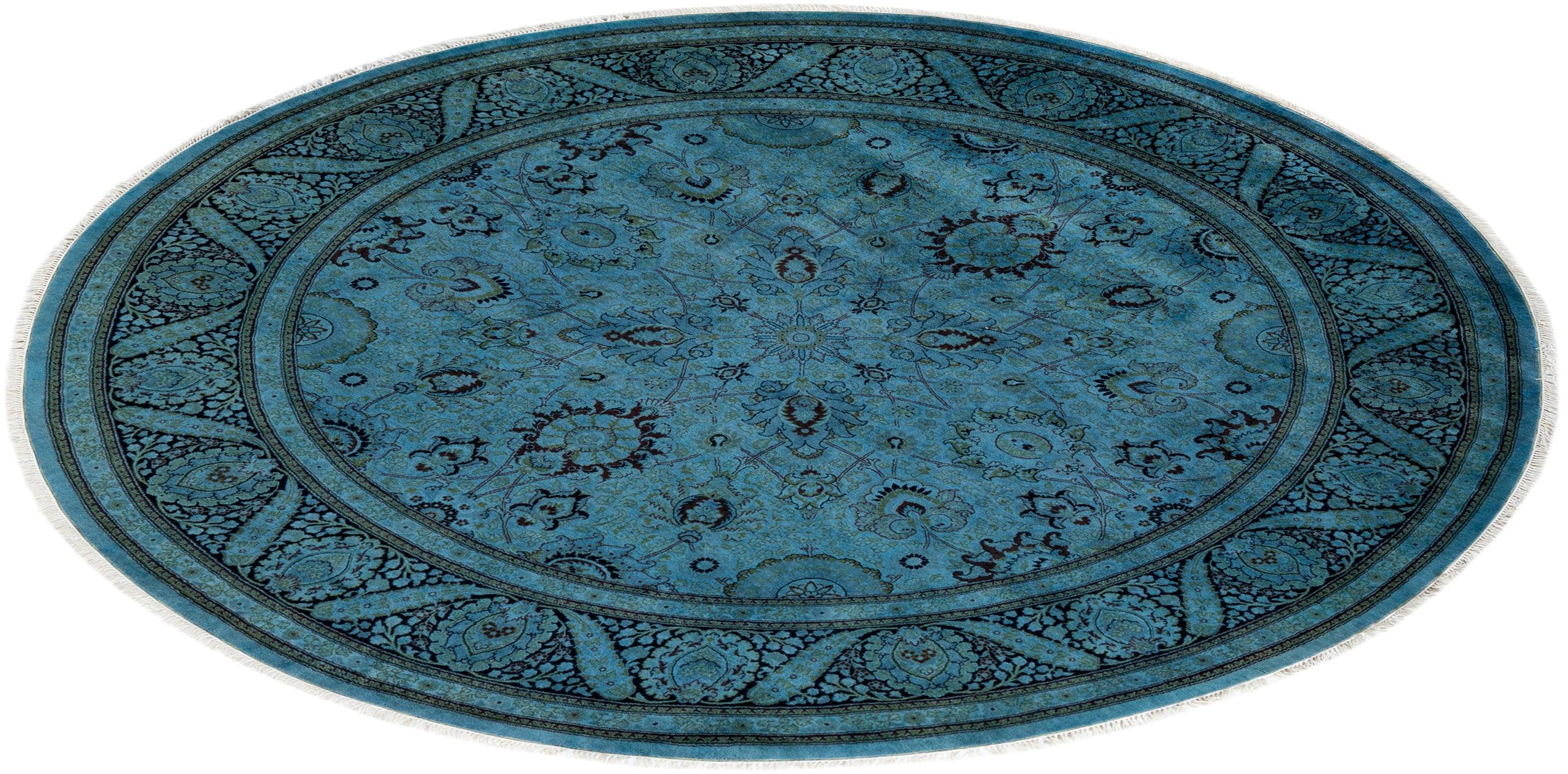 Contemporary Hand-Knotted Blue Round Area Rug 7' 1" x 7' 1"
