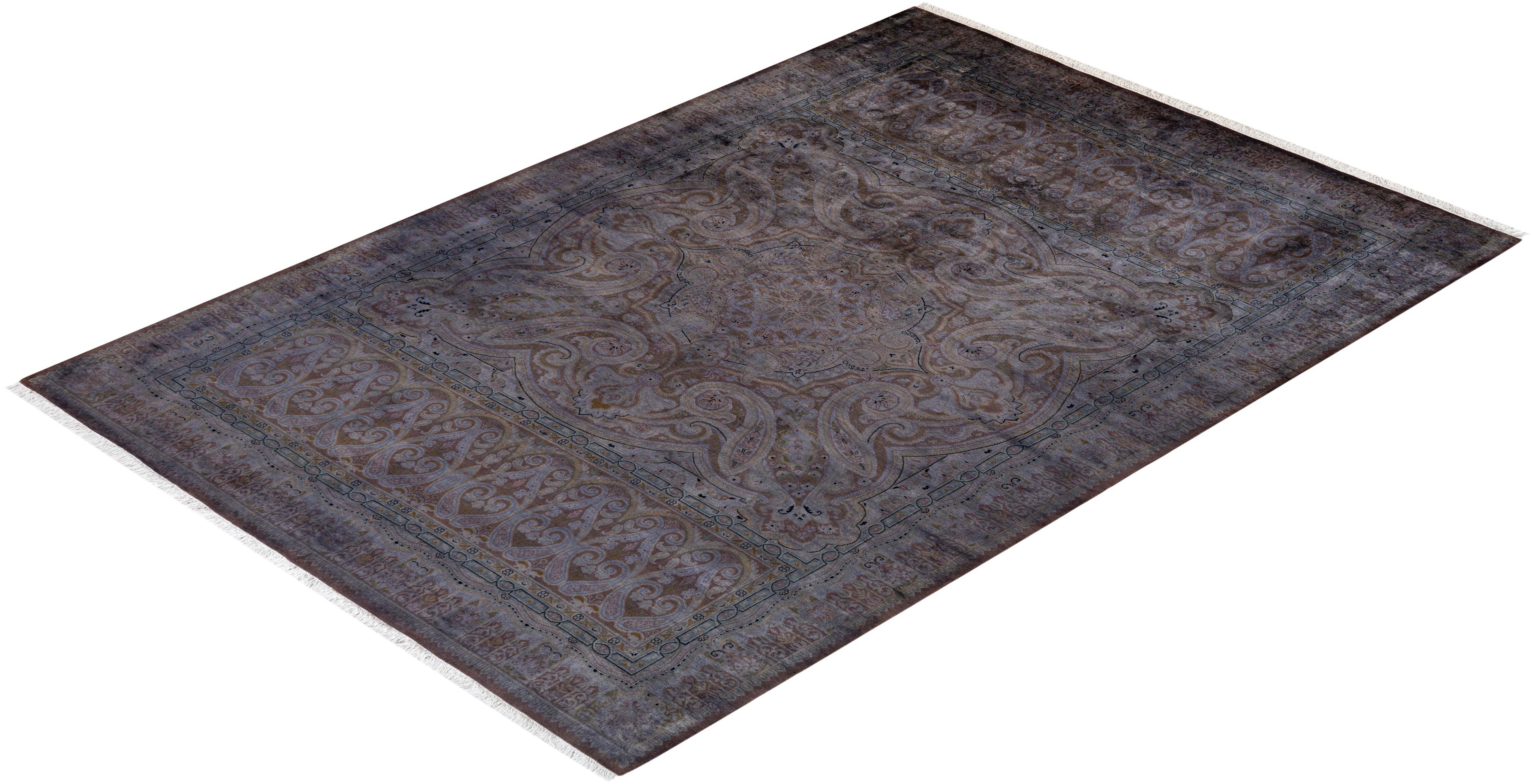 Contemporary Hand Knotted Overdyed Gray Area Rug 6' 2" x 9' 2"