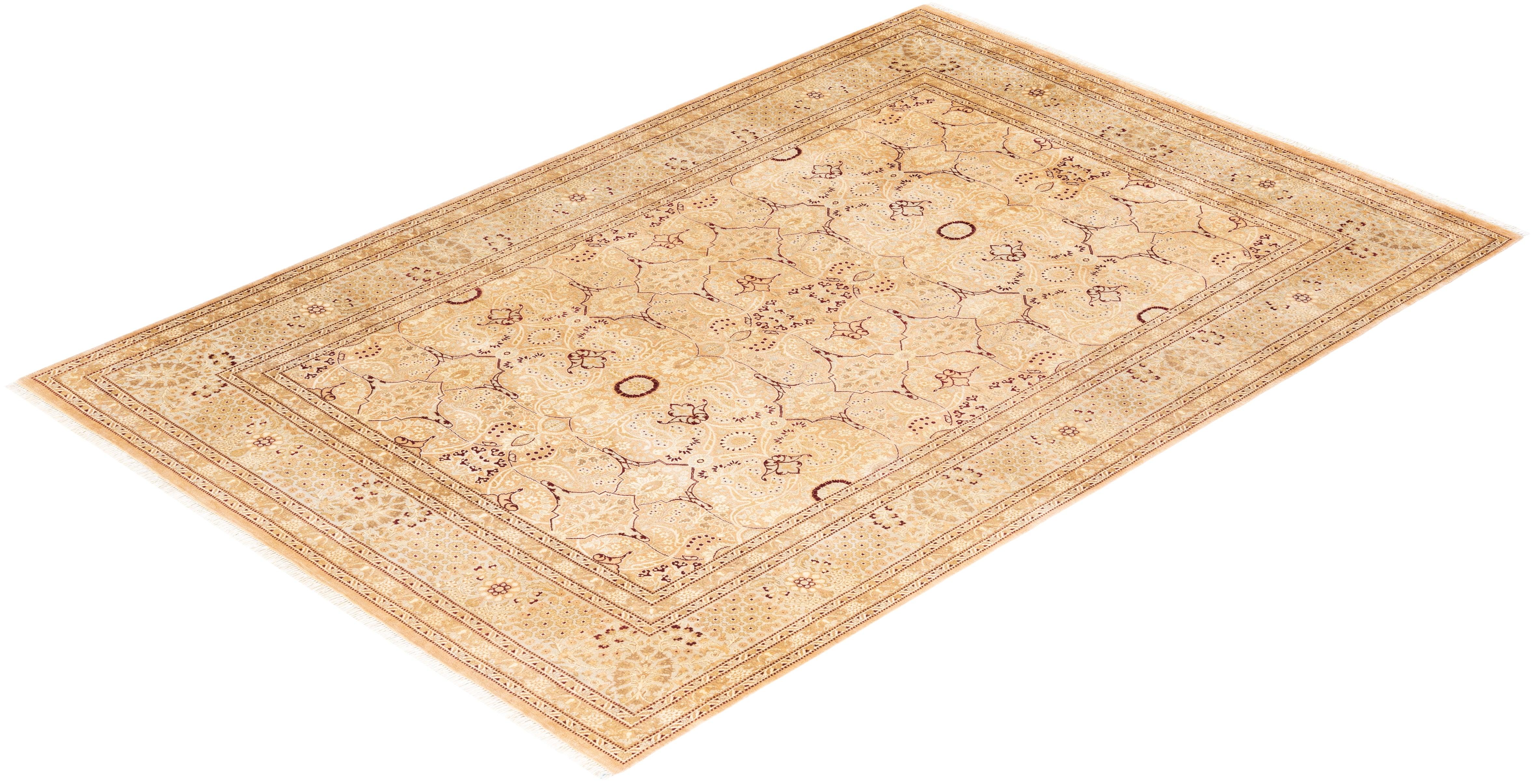 Traditional Hand Knotted Mogul Oriental Beige Area Rug 6' 1" x 9' 0"