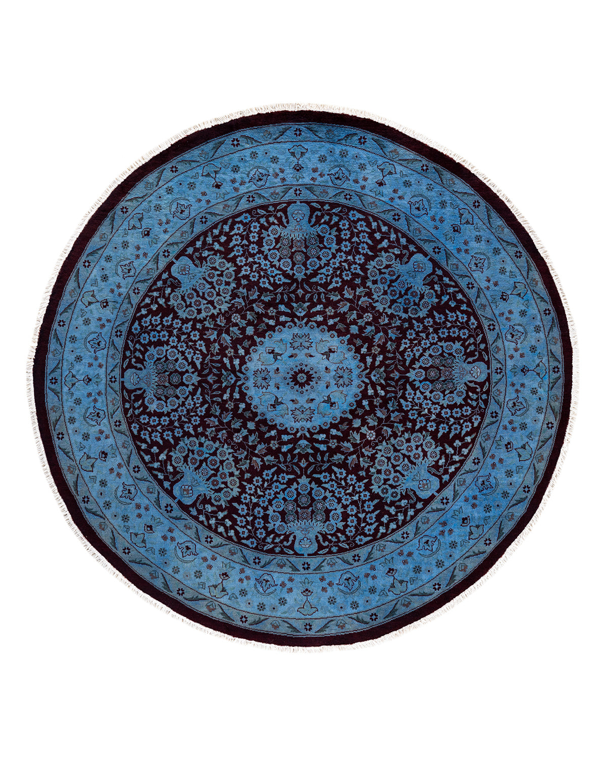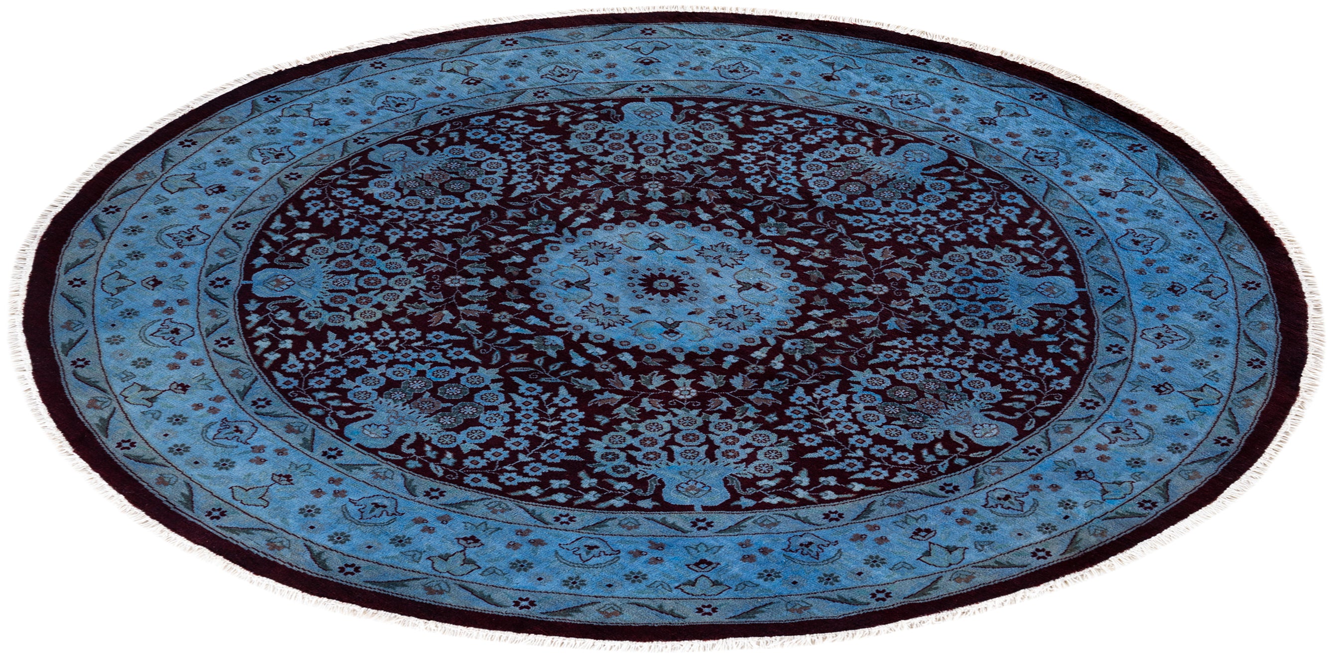 Contemporary Hand-Knotted Overdyed Blue Round Area Rug 6' 1" x 6' 1"