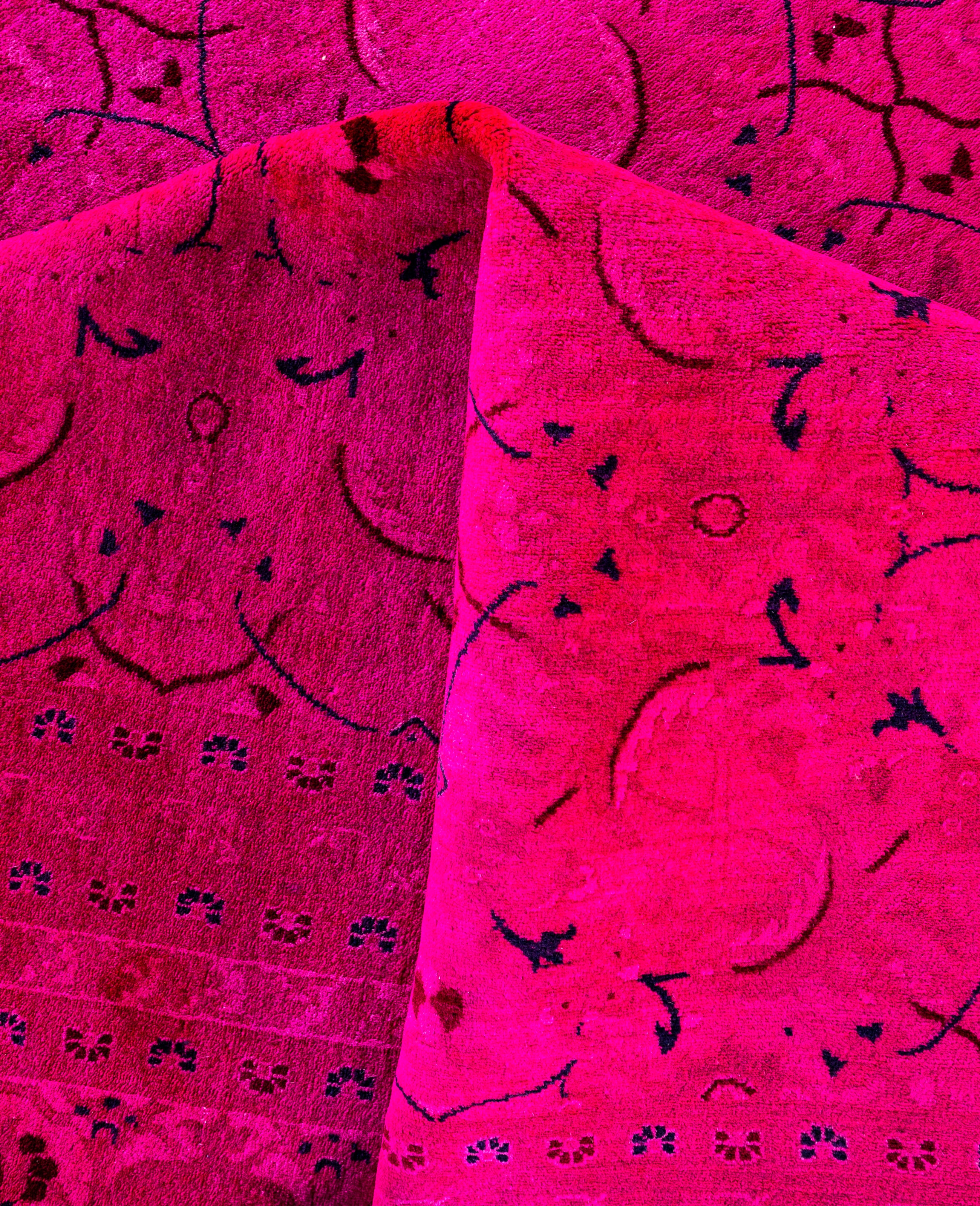 Over-dyed area rugs are created by taking vintage or traditional rugs and applying a vibrant, monochromatic dye over the existing patterns. This technique results in a bold, modern aesthetic while preserving the intricate designs beneath, blending the old with the new. The rugs are often faded and distressed before dyeing, which adds texture and depth to their appearance. The over-dye process breathes new life into worn or antique rugs, giving them a contemporary twist with rich, saturated colors like deep blues, purples, or bright reds. These rugs work well in both eclectic and modern spaces, offering a unique, artistic flair to any room. They provide a dynamic focal point, balancing between traditional craftsmanship and contemporary design trends. Over-dyed rugs are perfect for those looking to add a pop of color and character to their home decor.