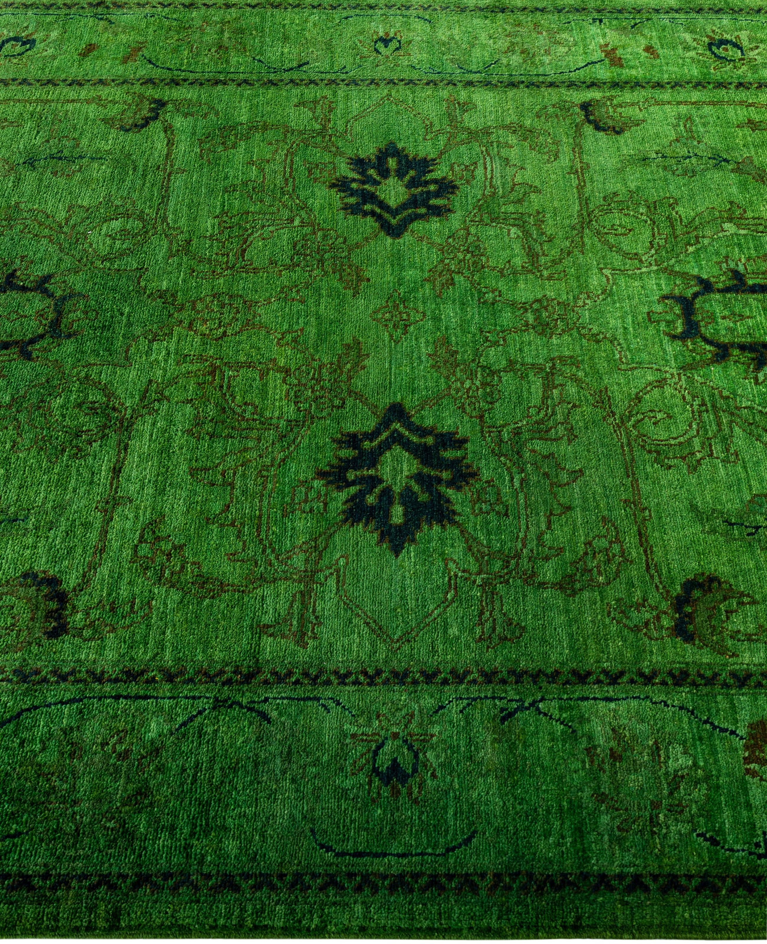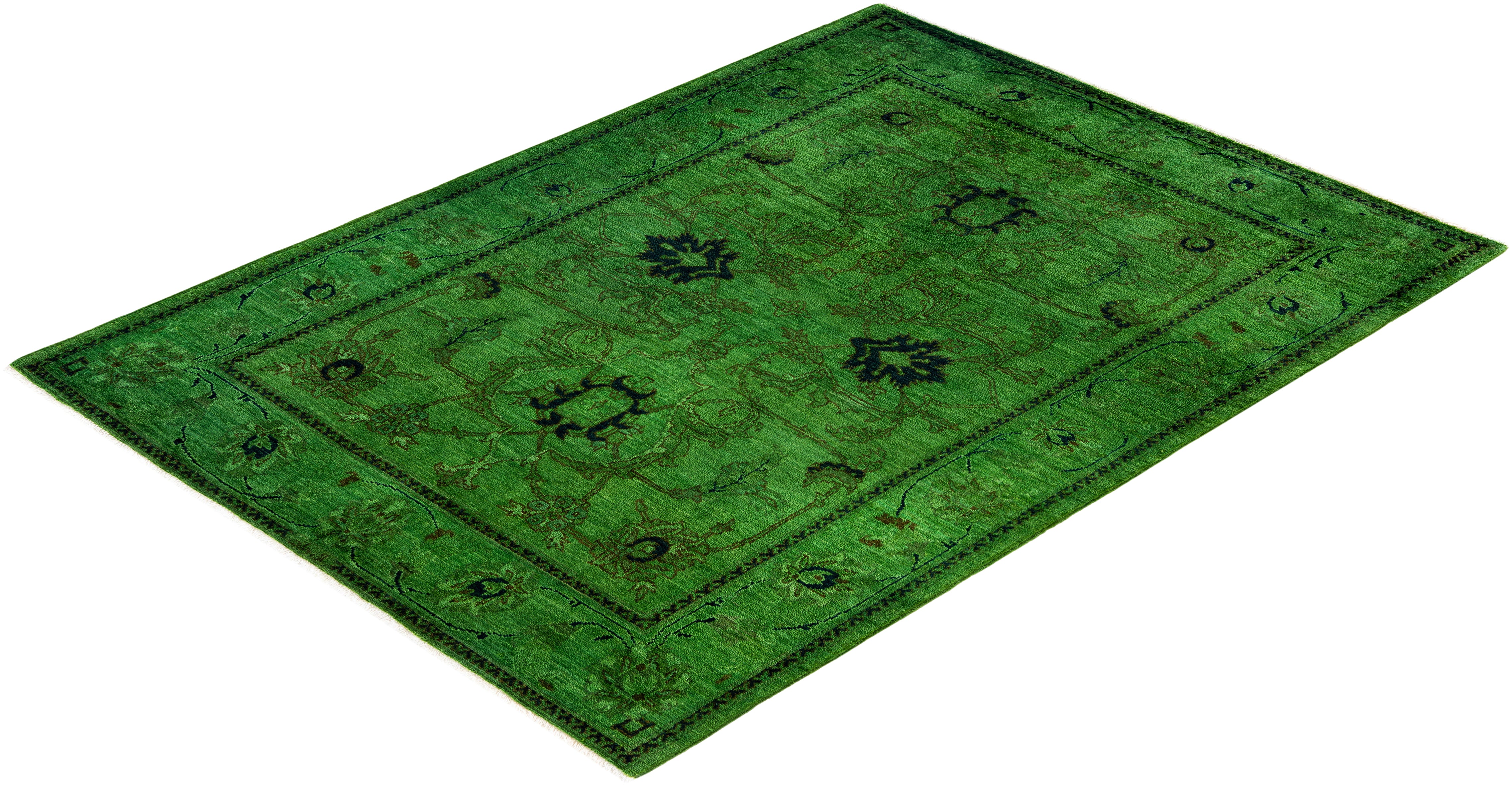 Contemporary Overdyed Wool Hand Knotted Green Area Rug 4' 9" x 6' 7"