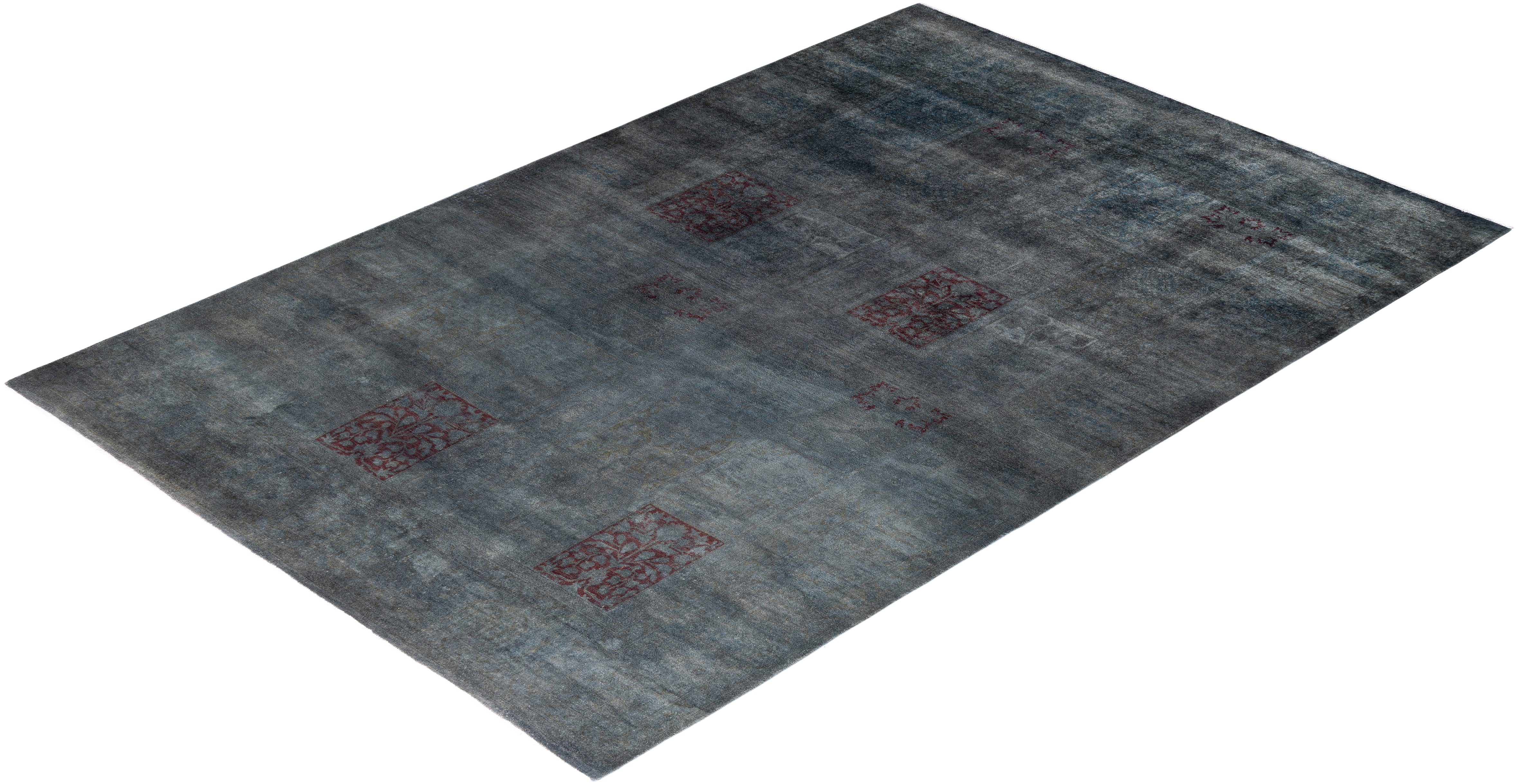 Contemporary Hand-Knotted Overdyed Charcoal Area Rug 6' 2" x 9' 2"