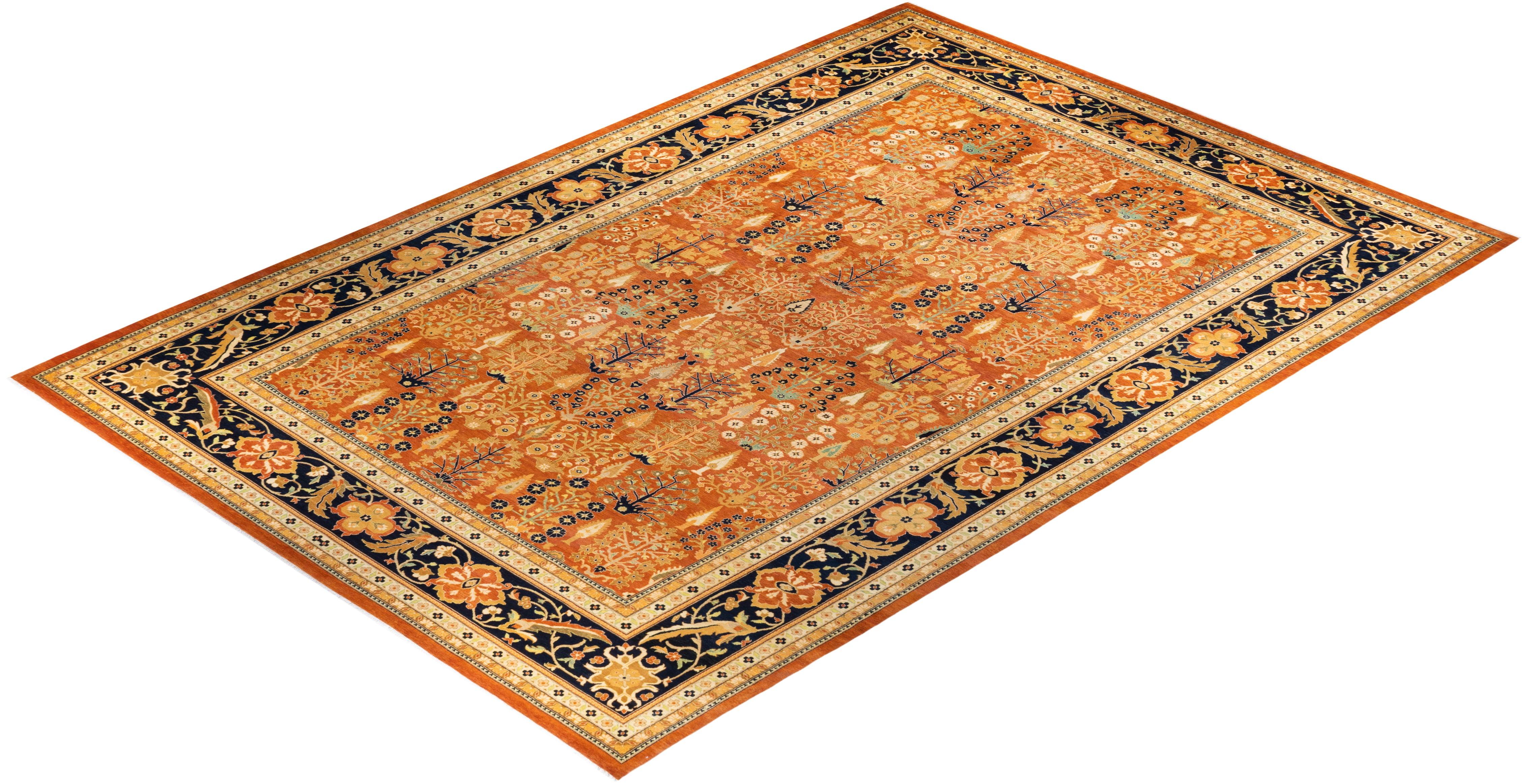 Contemporary Hand Knotted Eclectic Oriental Brown Area Rug 12' 2" x 18' 7"