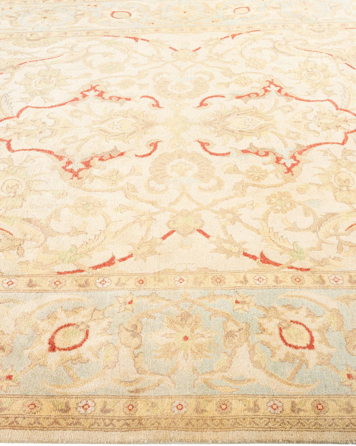 Contemporary Hand Knotted Eclectic Oriental Ivory Area Rug 6' 2" x 9' 7"