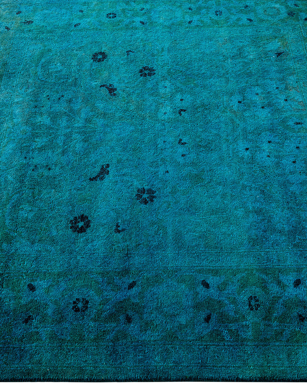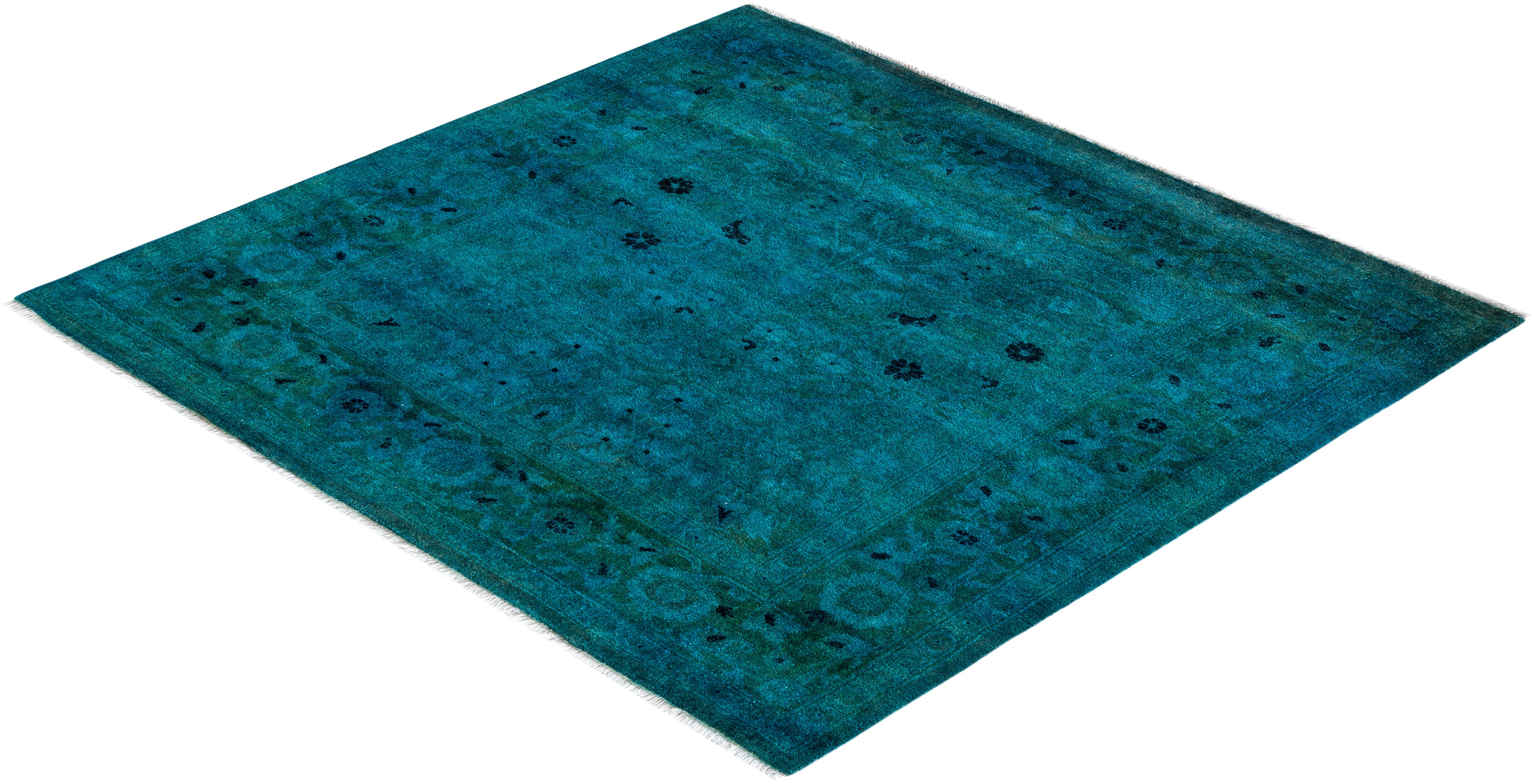 Contemporary Hand-Knotted Overdyed Blue Square Area Rug 4' 0" x 4' 2"