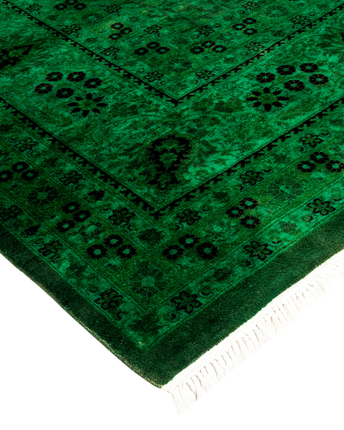 Contemporary Hand-Knotted Overdyed Green Area Rug 9' 1" x 18' 1"