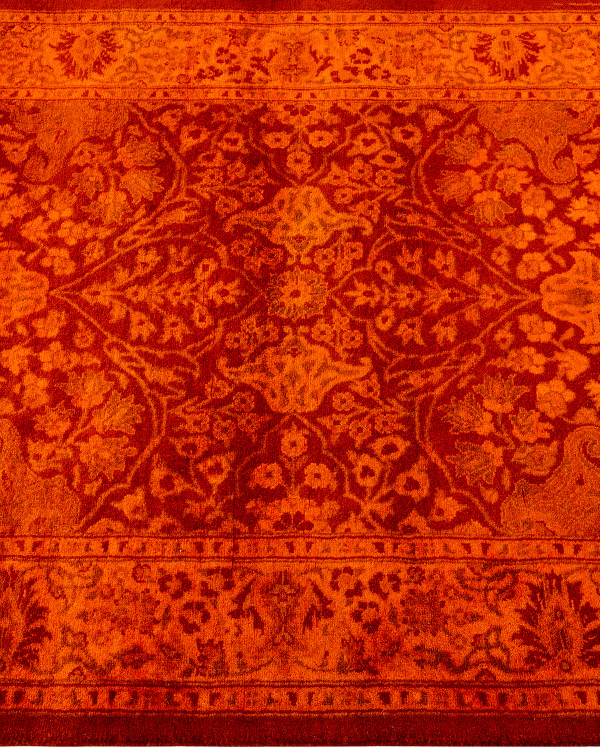 Overdyed rugs epitomize classic with a twist: traditional patterns overdyed in brilliant color. Each hand-knotted rug is washed in a 100%-natural botanical dye that reveals hidden nuances in the designs. These are rugs that transcend trends, and their sturdy construction ensures that they’ll withstand years of heavy traffic.