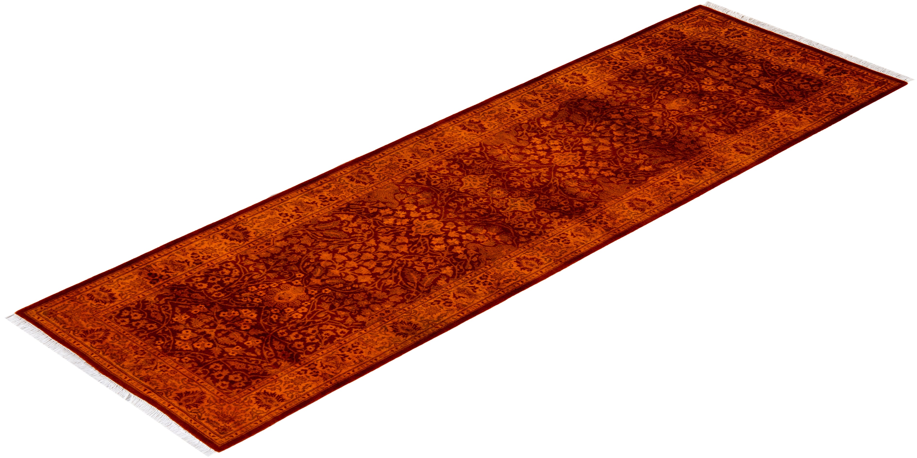 Contemporary Hand-Knotted Overdyed Orange Runner 2' 7" x 8' 5"