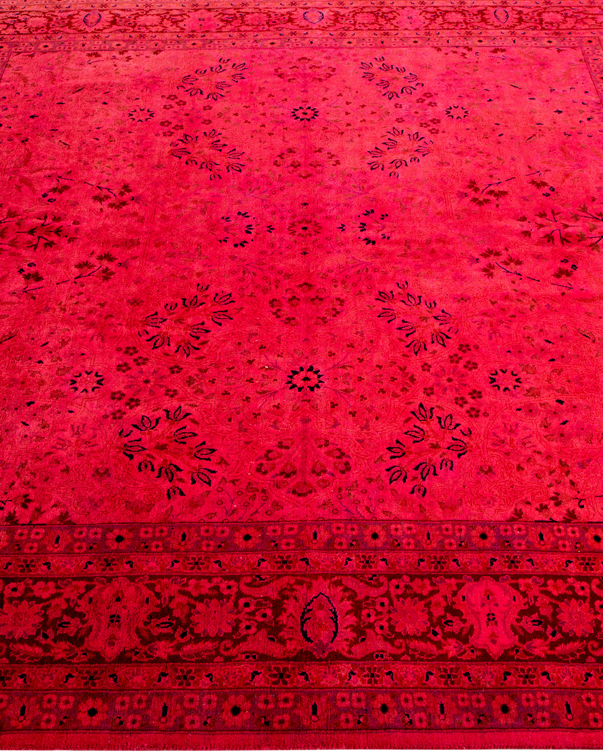 Overdyed rugs epitomize classic with a twist: traditional patterns overdyed in brilliant color. Each hand-knotted rug is washed in a 100%-natural botanical dye that reveals hidden nuances in the designs. These are rugs that transcend trends, and their sturdy construction ensures that they’ll withstand years of heavy traffic.