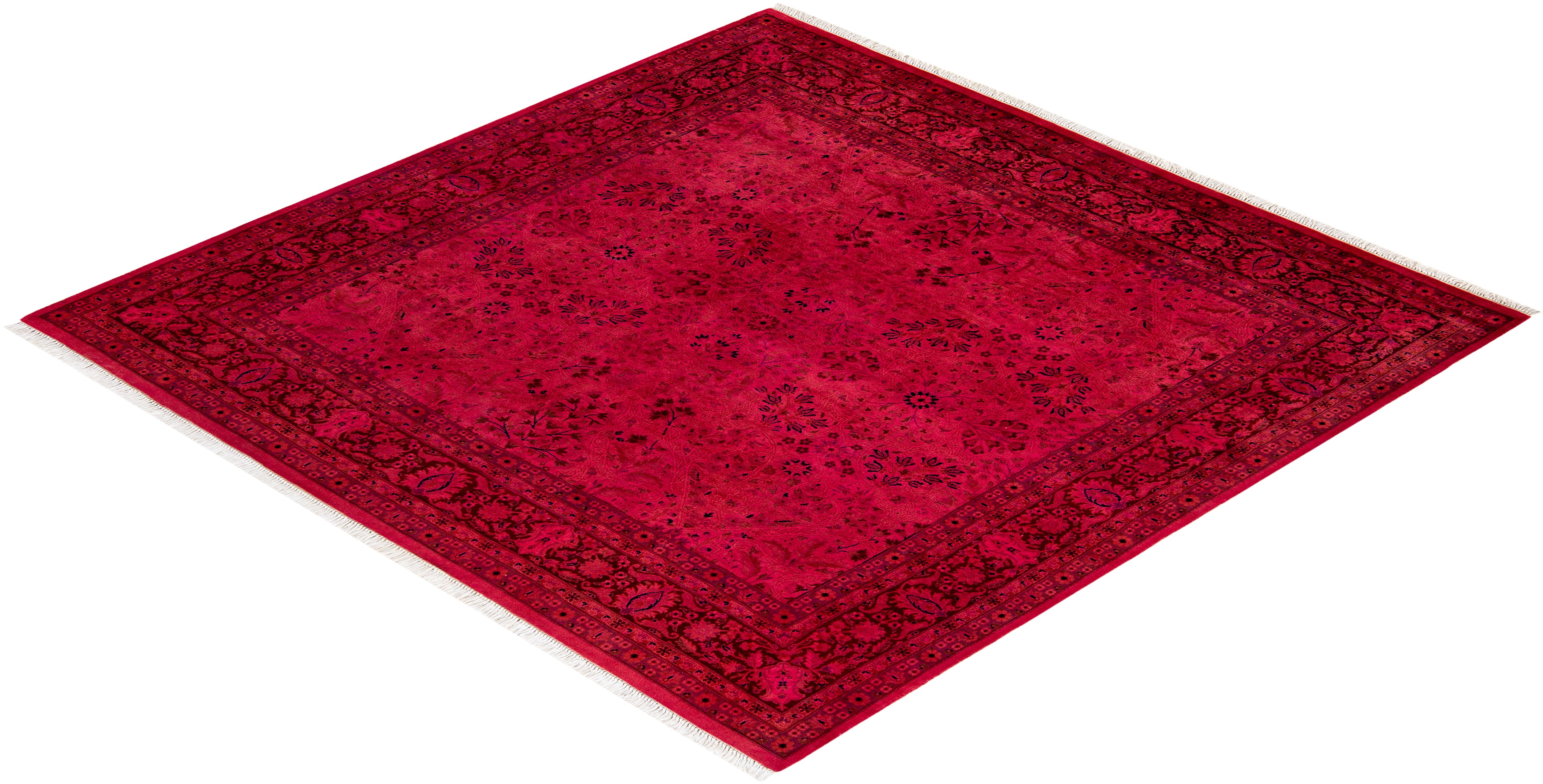 Contemporary Hand-Knotted Overdyed Pink Square Area Rug 6' 1" x 6' 2"