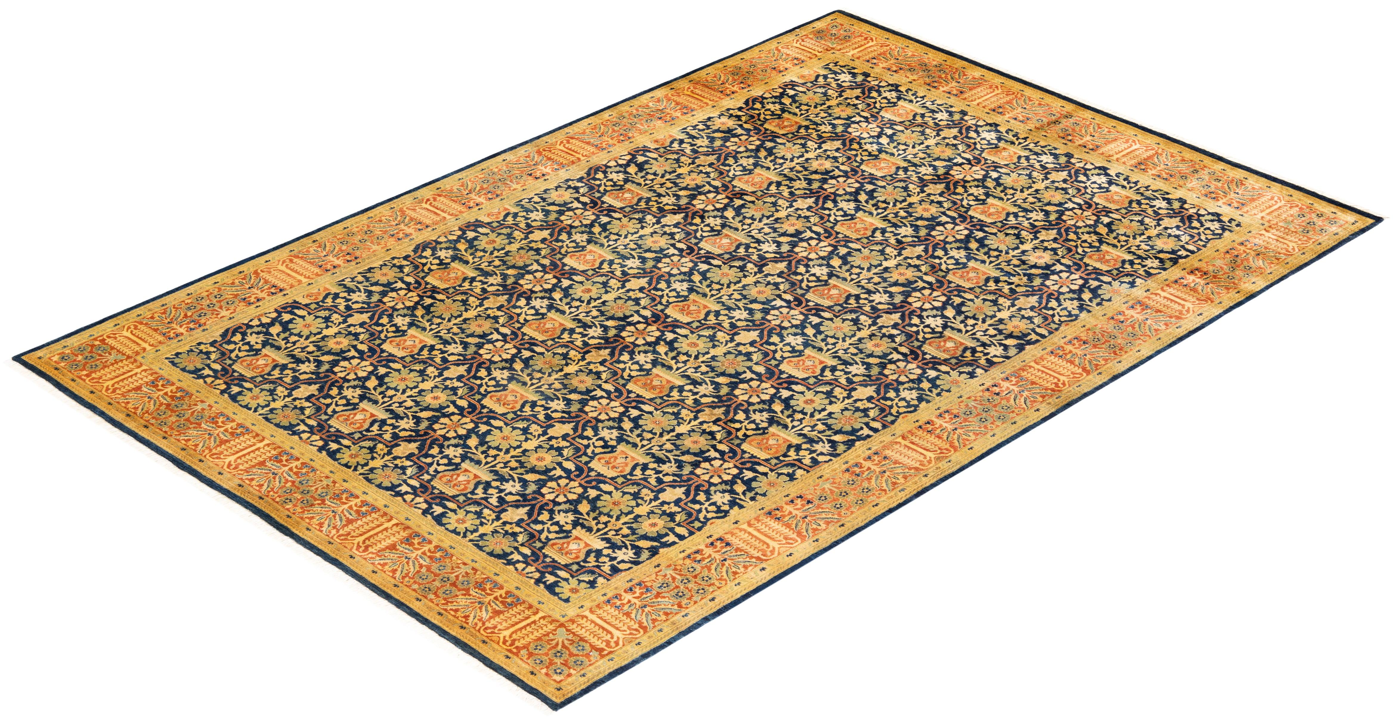 Traditional Hand Knotted Mogul Oriental Blue Area Rug 6' 1" x 9' 1"