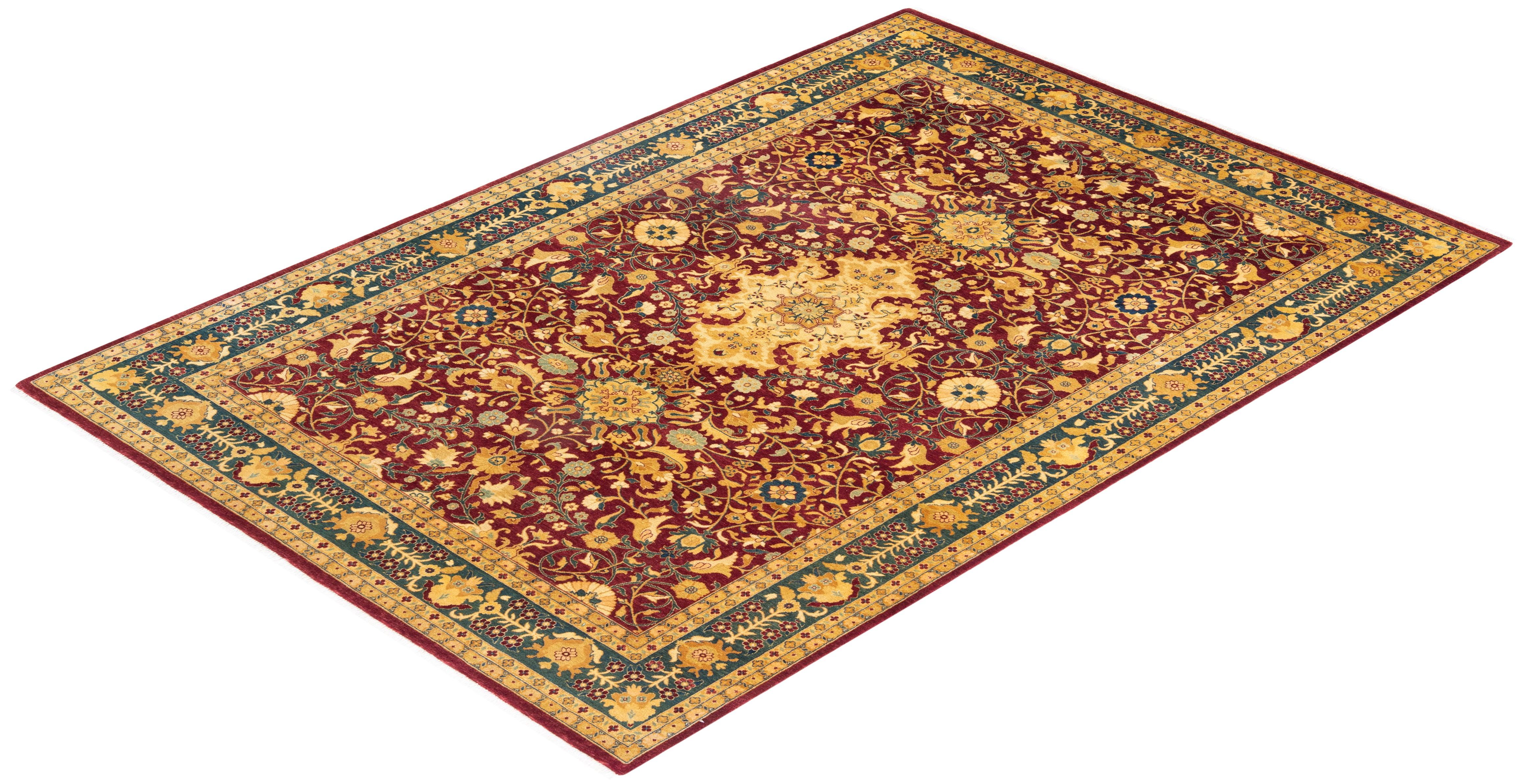 Traditional Hand Knotted Mogul Oriental Red Area Rug 6' 1" x 8' 10"