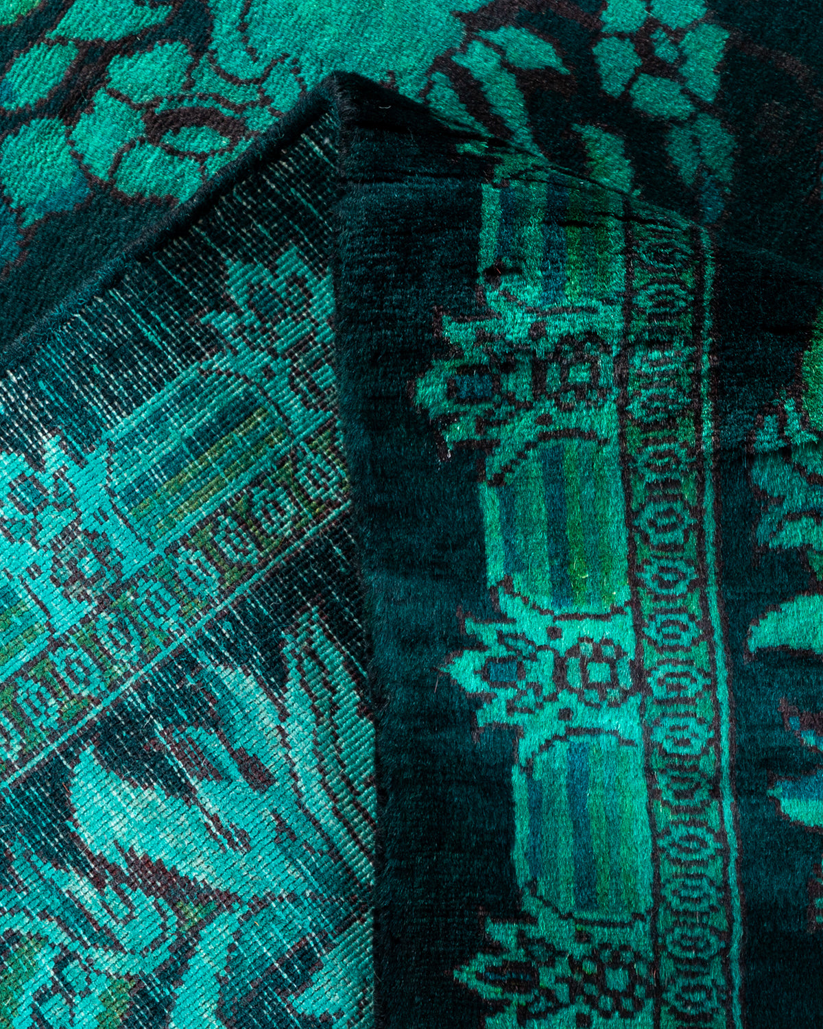 Overdyed rugs epitomize classic with a twist: traditional patterns overdyed in brilliant color. Each hand-knotted rug is washed in a 100%-natural botanical dye that reveals hidden nuances in the designs. These are rugs that transcend trends, and their sturdy construction ensures that they’ll withstand years of heavy traffic.