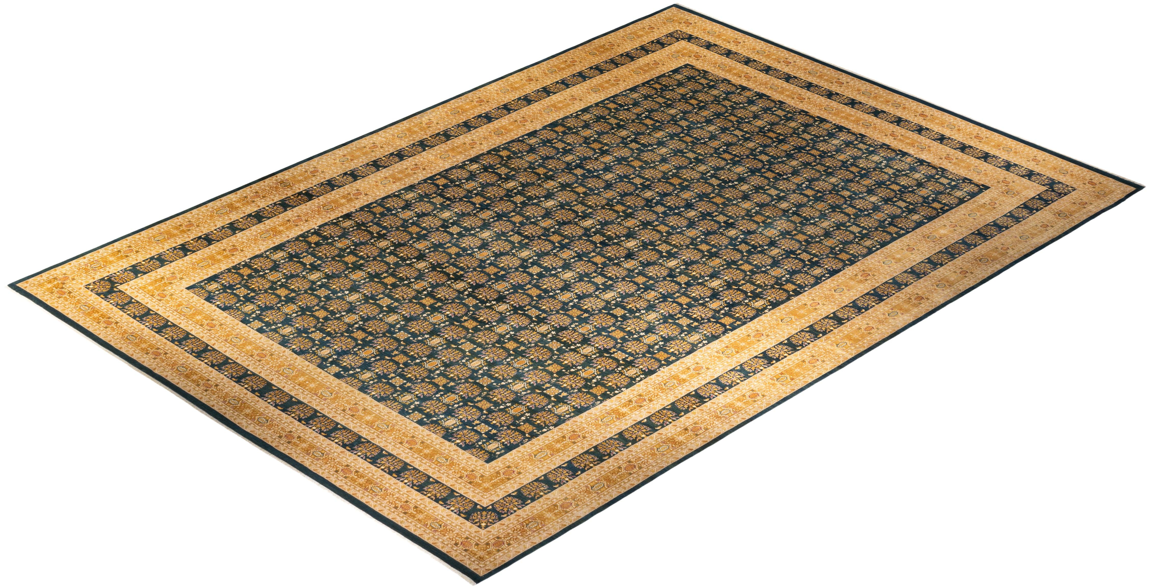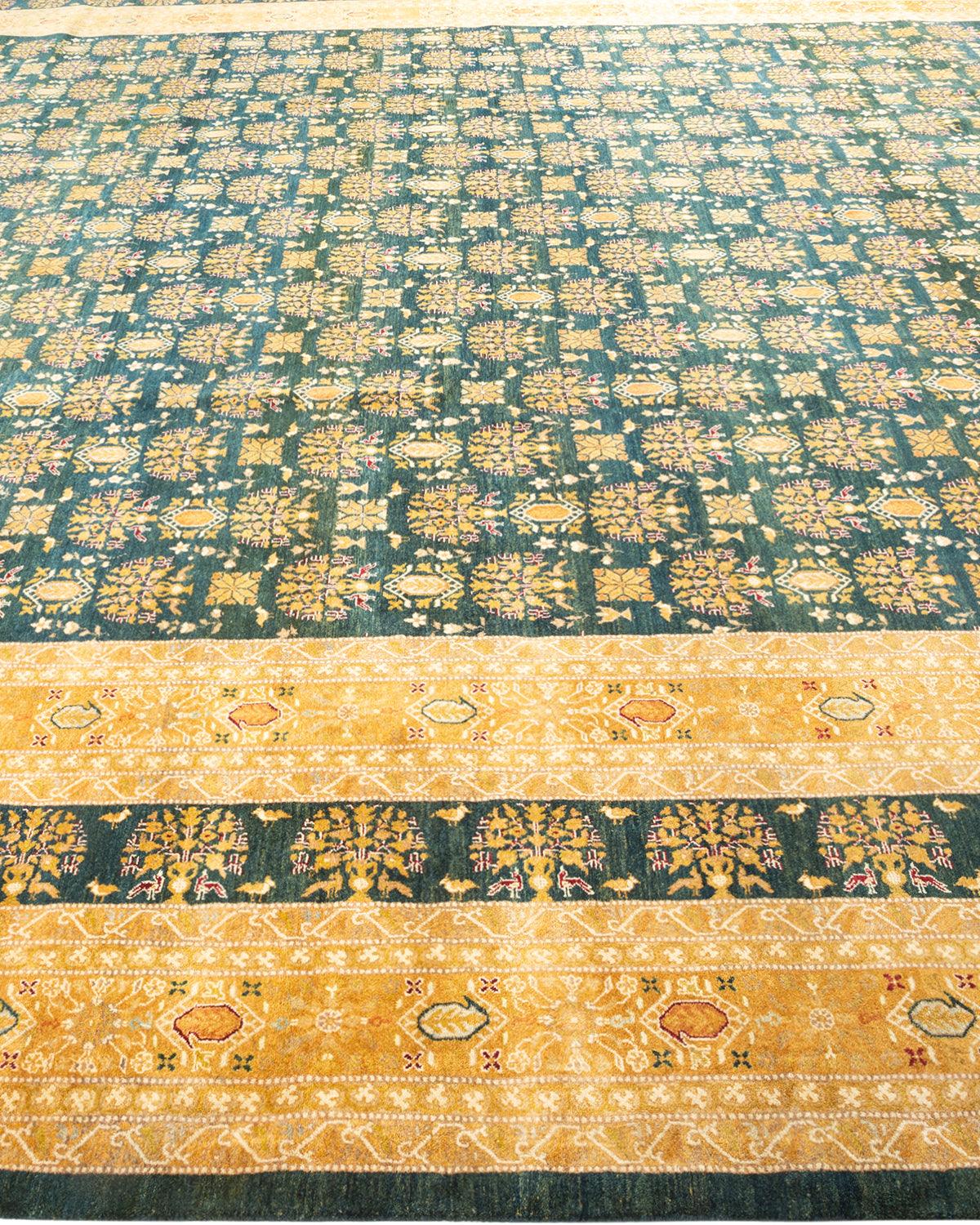 Traditional Hand Knotted Mogul Oriental Green Area Rug 12' 4" x 17' 10"