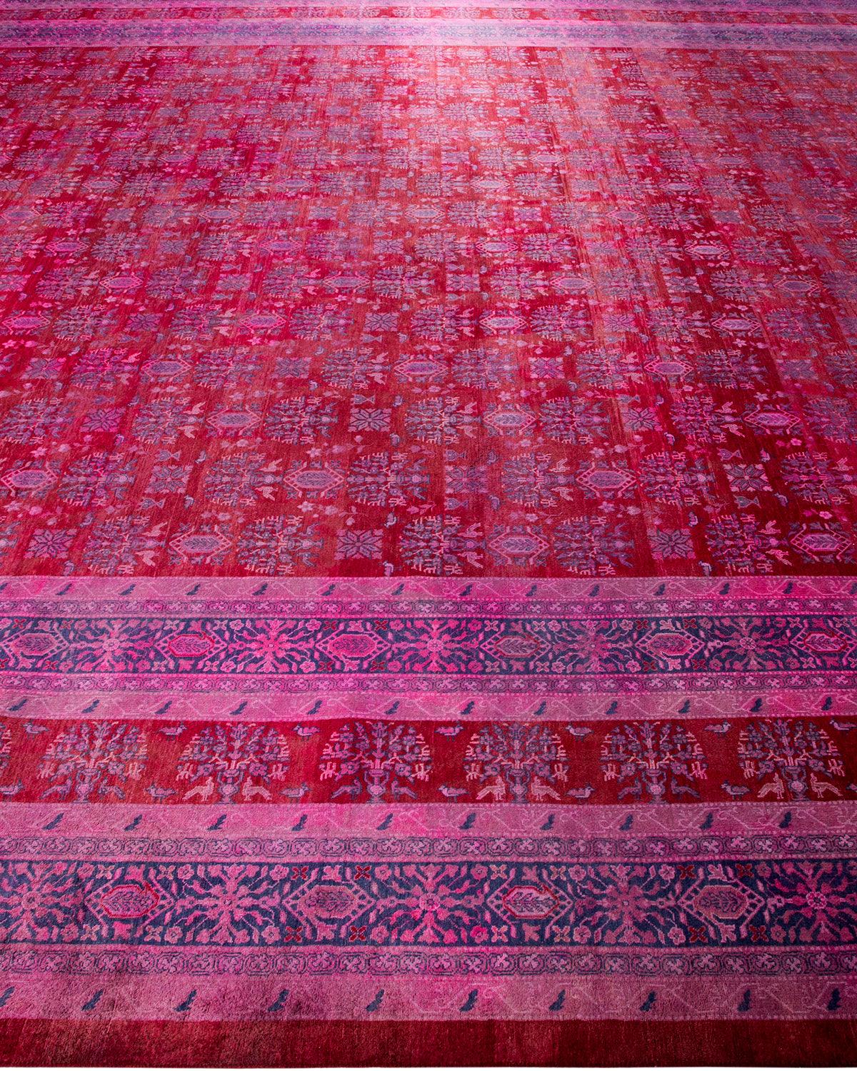 Contemporary Hand Knotted Overdyed Red Area Rug 15' 3" x 12' 2"
